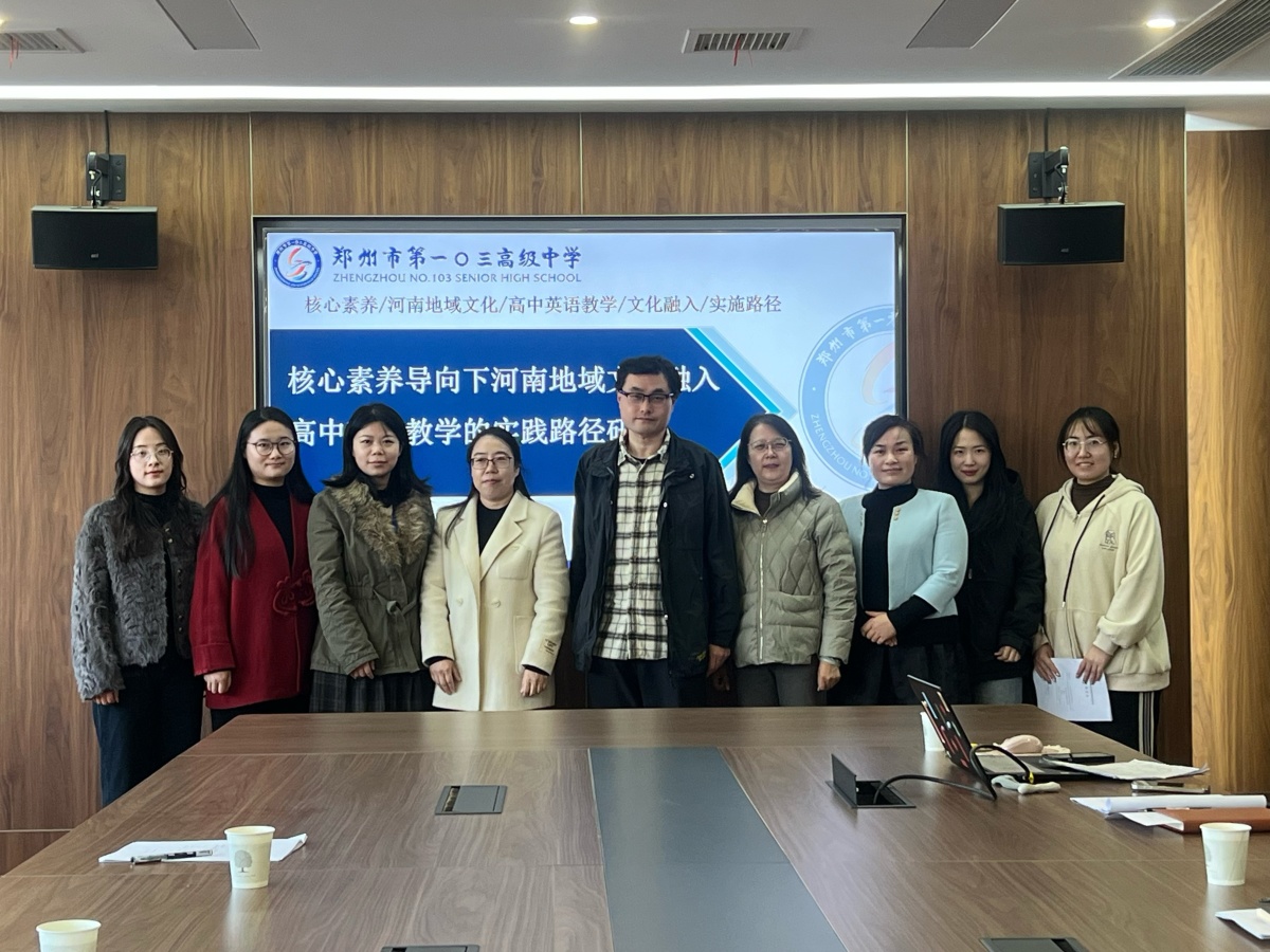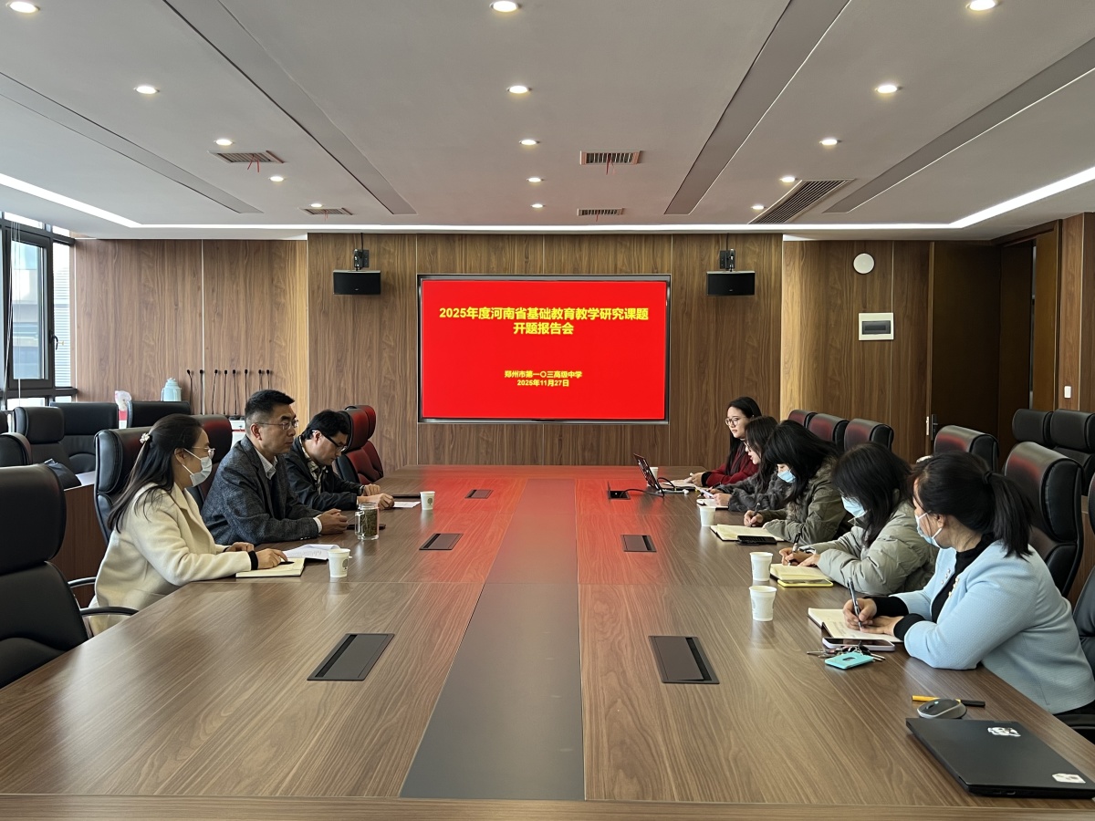 2025年11月27日,河南省基础教育教学研究项目《核心素养导向下河南地域文化融入高中英语教学的实践路径研究》开题报告会在郑州市第一〇三高级中学组织召开。学校领导、课题组成员及特邀郑州市教育科学规划与评估中心副研究员石毅、郑州市第四十七高级中学外语省一级学科负责人郝晓,共同为课题研究启幕护航。