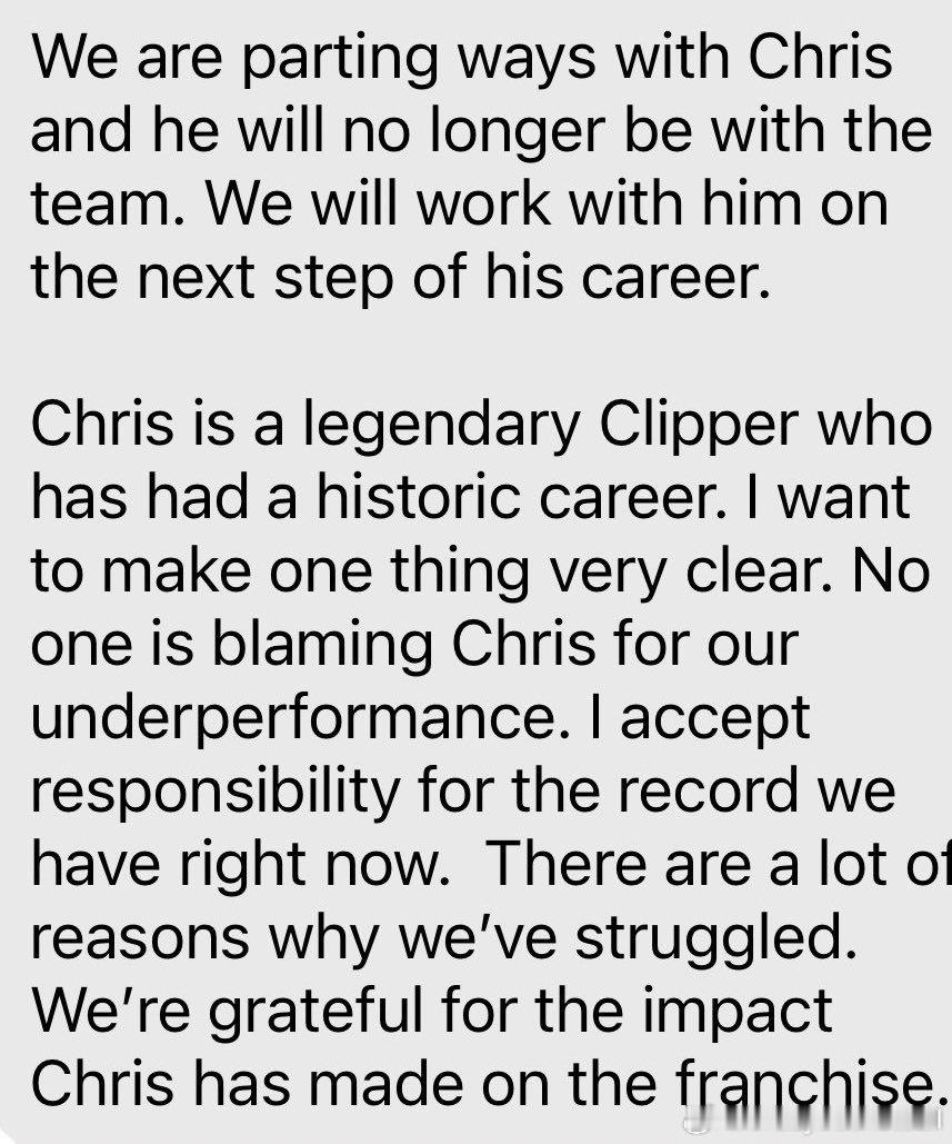 快船队用“不是你的错……是我的错”这句渣男渣女的分手金句裁掉了保罗保罗应该不会退