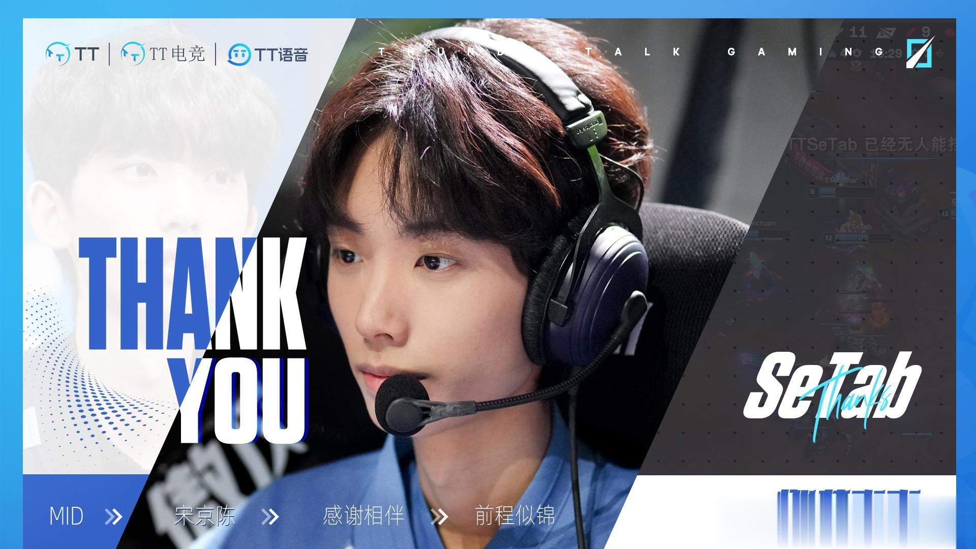 经双方友好沟通与协商,原TT英雄联盟分部中单选手宋京陈(ID:SeTab)断开连接,即日起正式离队。