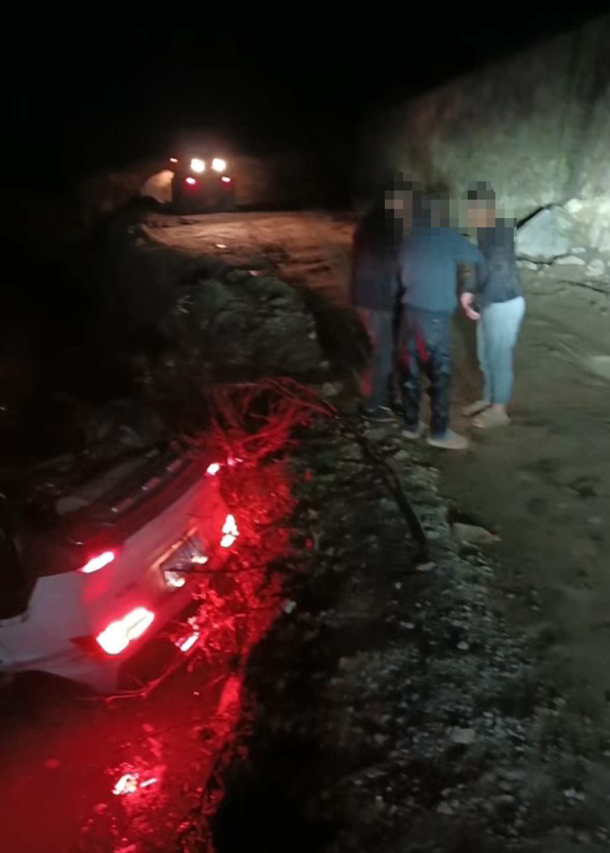 危急时刻,程军强和李洪雷发现了异常。“看见有辆车在水里面,车灯还微亮,不知道车里有人没,我们就大声喊,问车里有没有人。”程军强回忆,“听到了车里传来了咚咚的敲击声,知道了车里有人被困,我们就赶紧下去救人!”