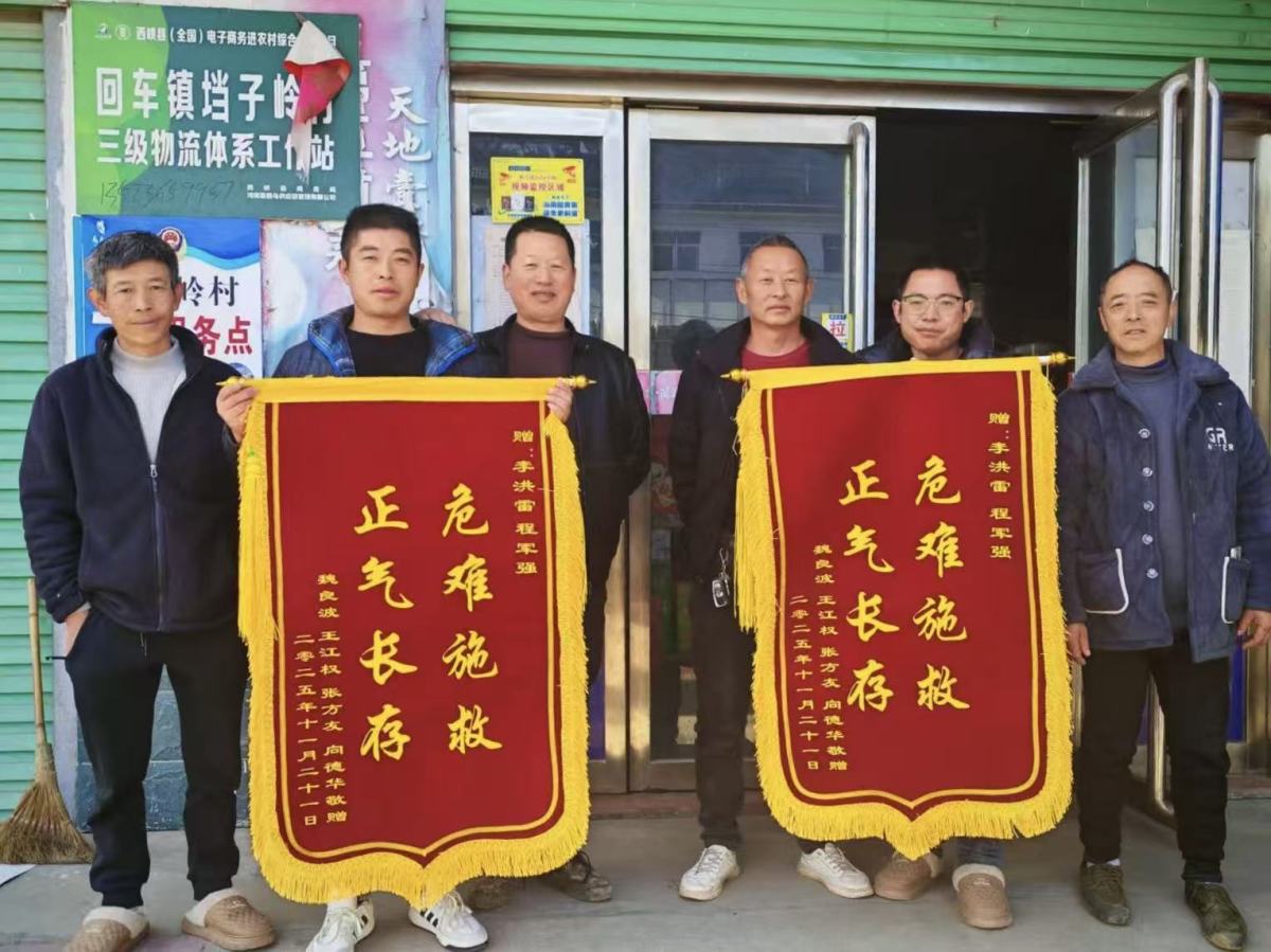 这面锦旗背后,是一段发生于寒夜河中的紧急救援。11月21日晚9时许,河南省西峡县一辆载有四人的车辆不慎坠河,倒扣水中,车内人员瞬间被困,情况十分危急。途经此地的当地群众程军强、李洪雷发现后,毫不犹豫跳入冰冷河水中,砸窗撬车门,最终将车内四人全部安全救出。
