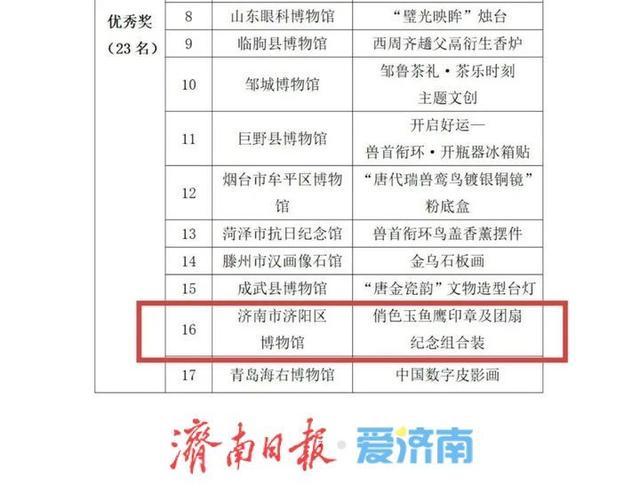 为进一步推动中华优秀传统文化创造性转化、创新性发展,充分挖掘和展示齐鲁大地珍贵文物资源所蕴含的文化价值与时代精神,山东省博物馆学会组织开展了“文物新生·创意齐鲁”2025年山东省博物馆文化创意设计大赛。济阳区博物馆文创产品“俏色玉鱼鹰印章及团扇纪念组合装”在此次大赛中荣获优秀奖。