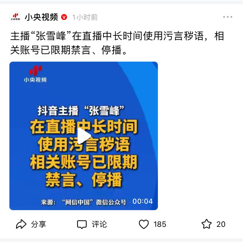 抖音还有第二个“张雪峰”吗? 1个小时前,小央视频说他“污言秽语”,账号已经限期禁言、停播了。 我纳闷了,这个张雪峰是不是指导“高考选志愿报学校”的那个?他可是无数高考家长(学子)的灯塔、启明星啊。迷茫的人,他三言两语就可指点迷津。 看过他的视频,人很实在不做作。 说他冒脏话关号,有点不敢相信。发生了什么? 张雪峰 张雪峰采访视频 张雪峰怒怼评委 张雪峰唱歌 教育大v张雪峰