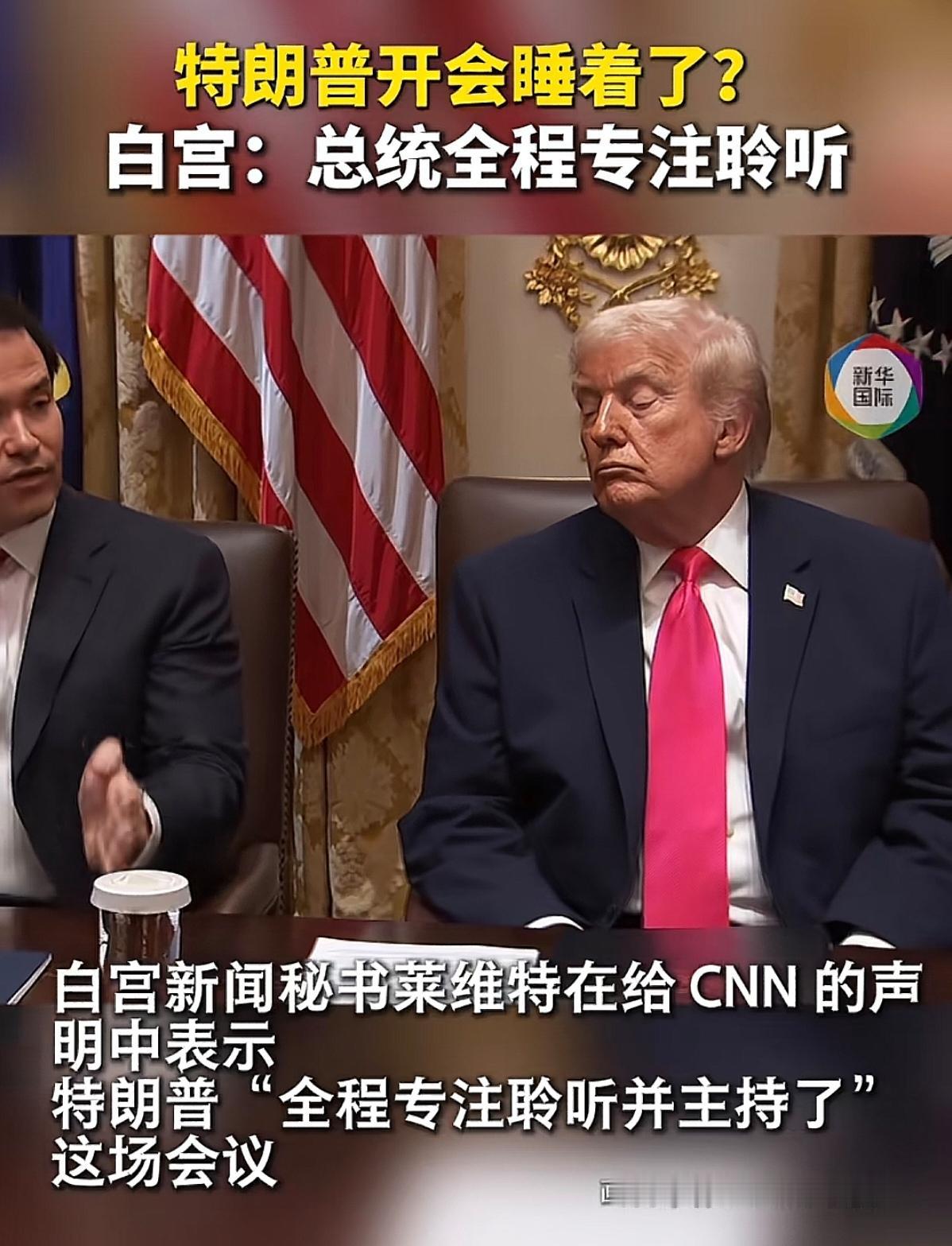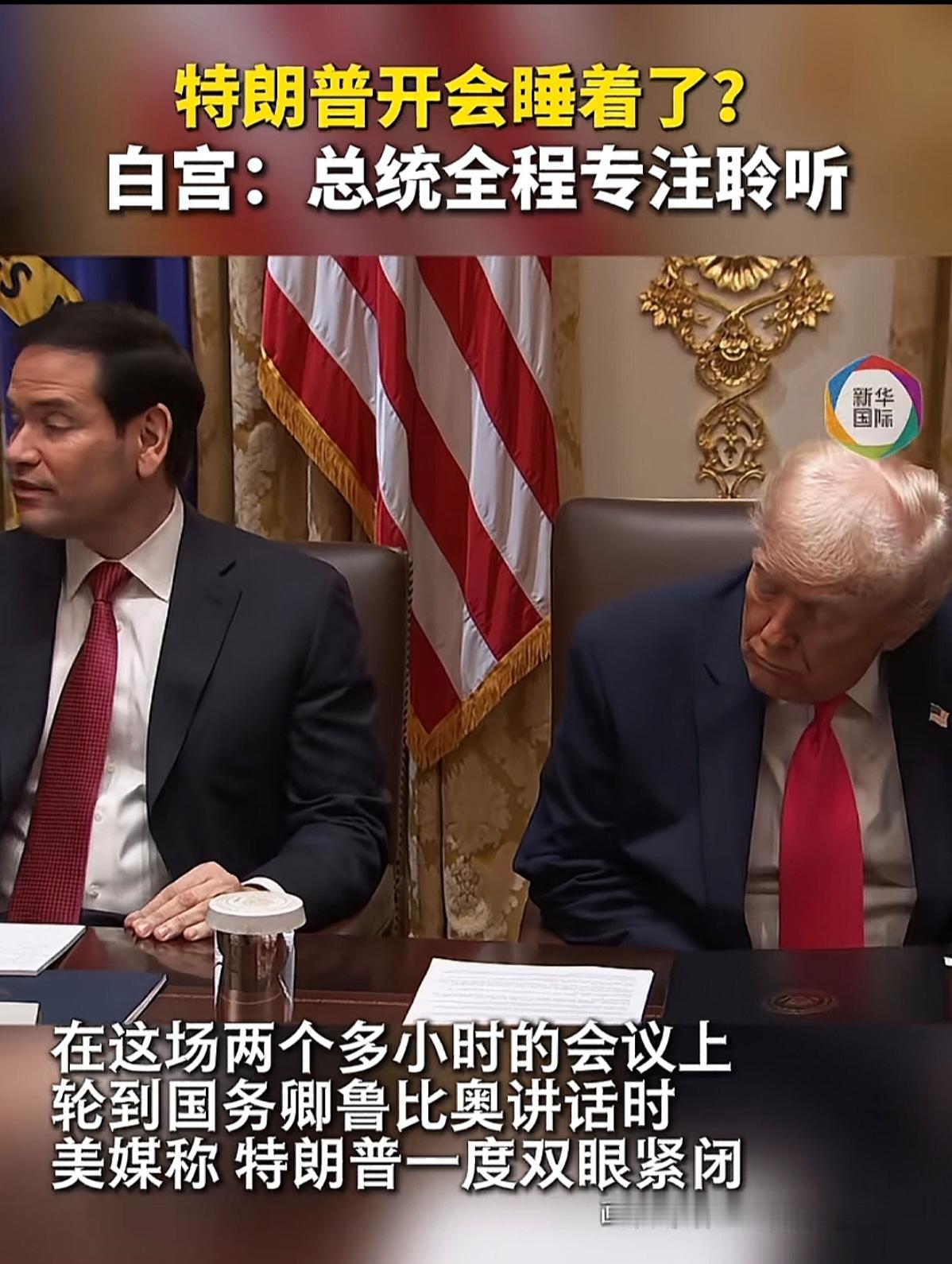 这个就像读书的时候一样,有时候太累了,老师在讲台讲课,学生在课桌上打盹。估计特朗普开会的时候,也是这种状态。他是想认真听别人发言的,但是越认真听发言,越容易犯困打盹。估计就是专注的听着听着就打起了盹。这也不算打瞌睡,就是一种持续数秒钟的打盹的状态。我估计是这样的!