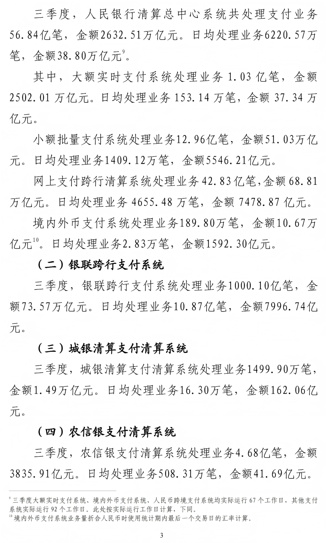 以下为《三季度支付体系运行总体情况》全文