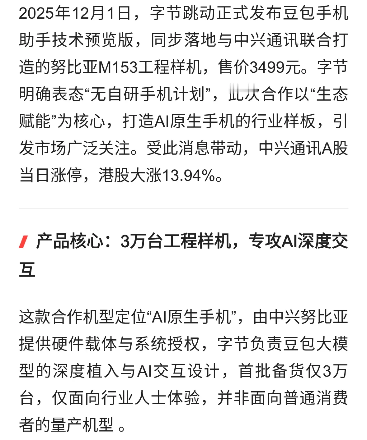 字节不造手机!联合中兴推AI原生样机,豆包助手成核心亮点