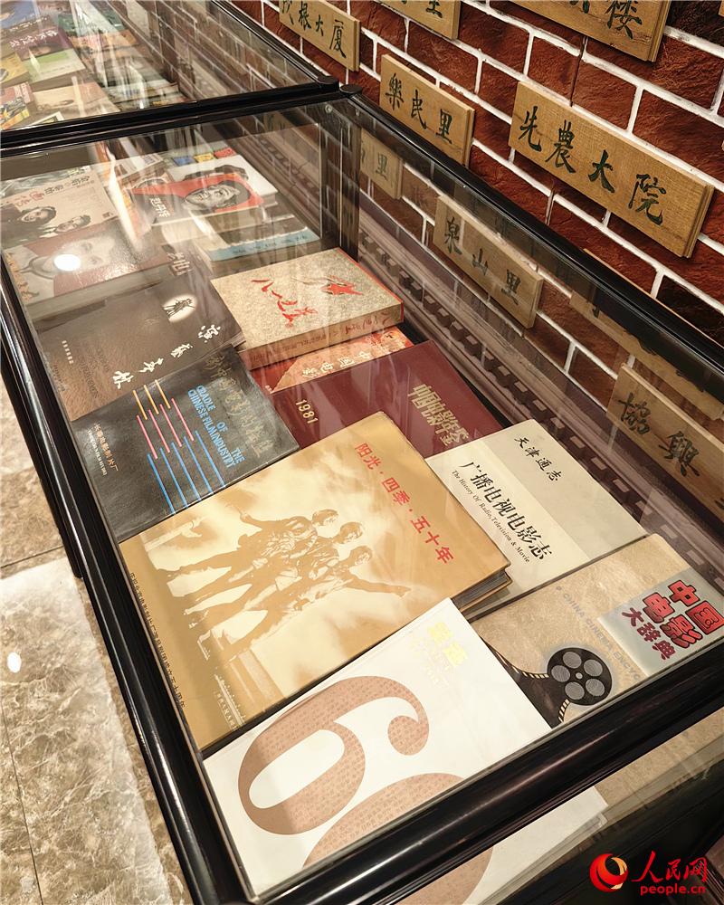展览现场展出了各种电影相关书籍。人民网记者李丹摄