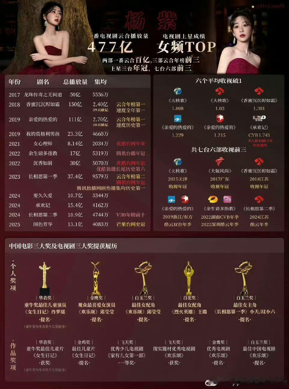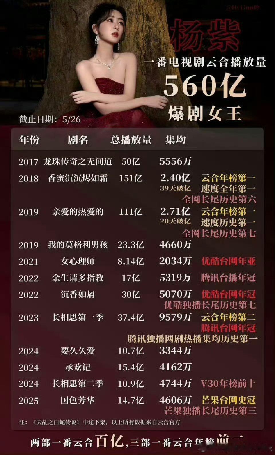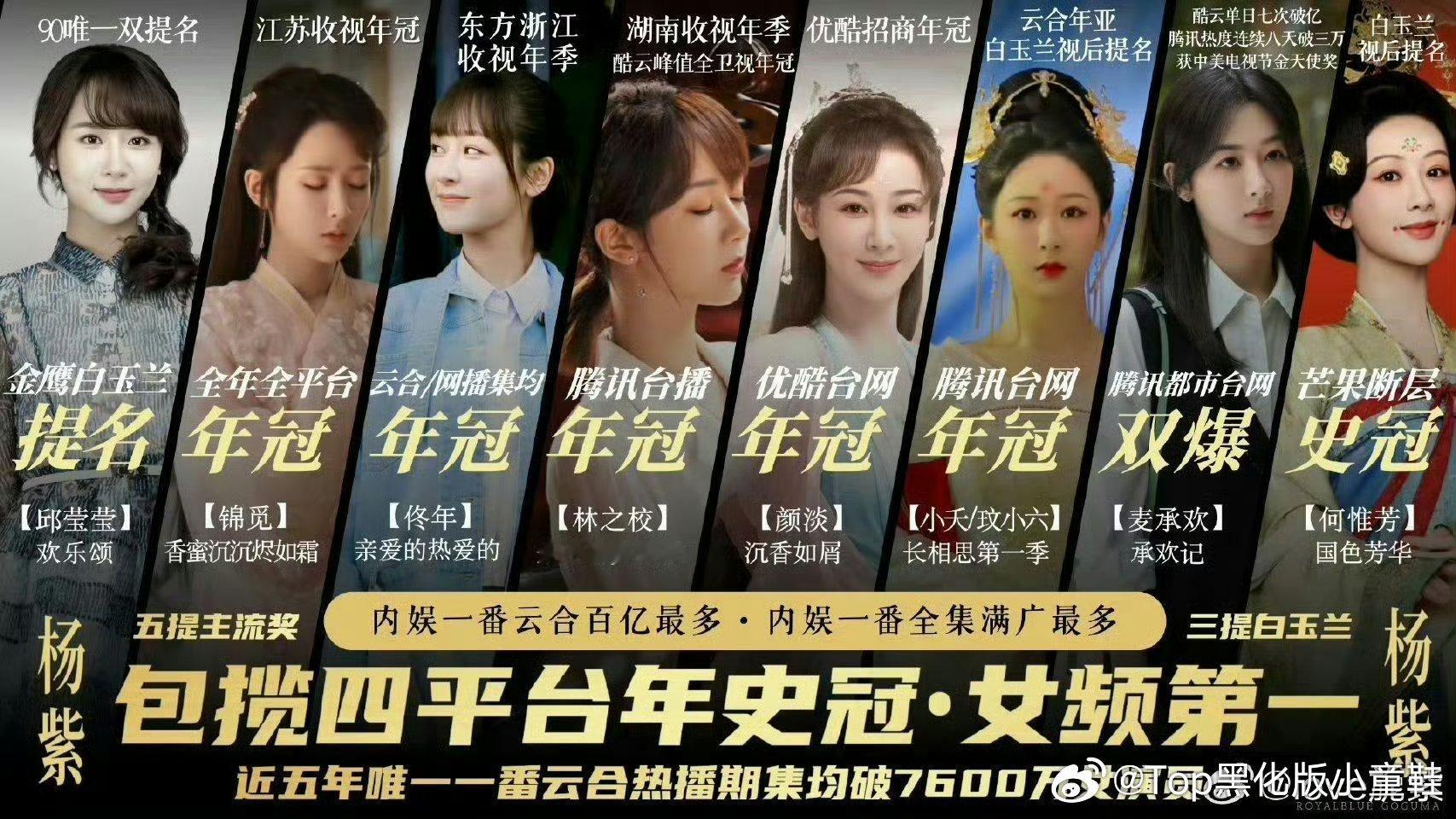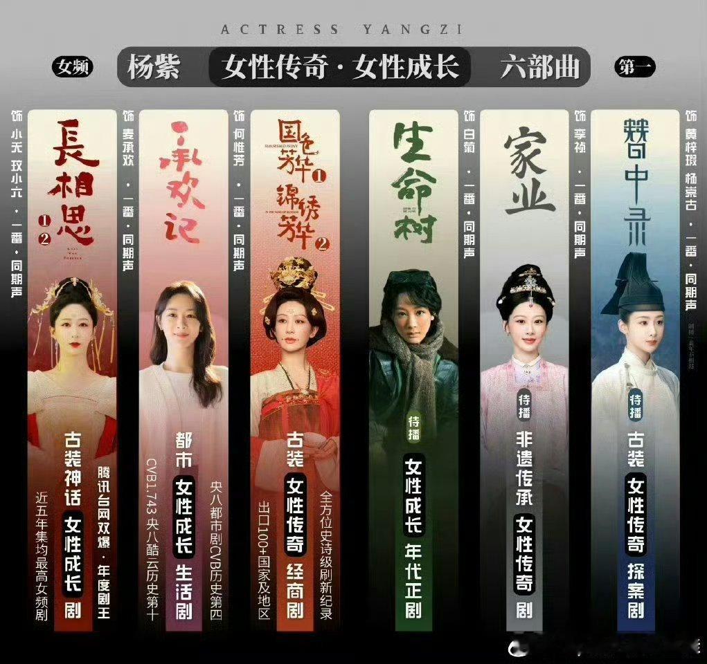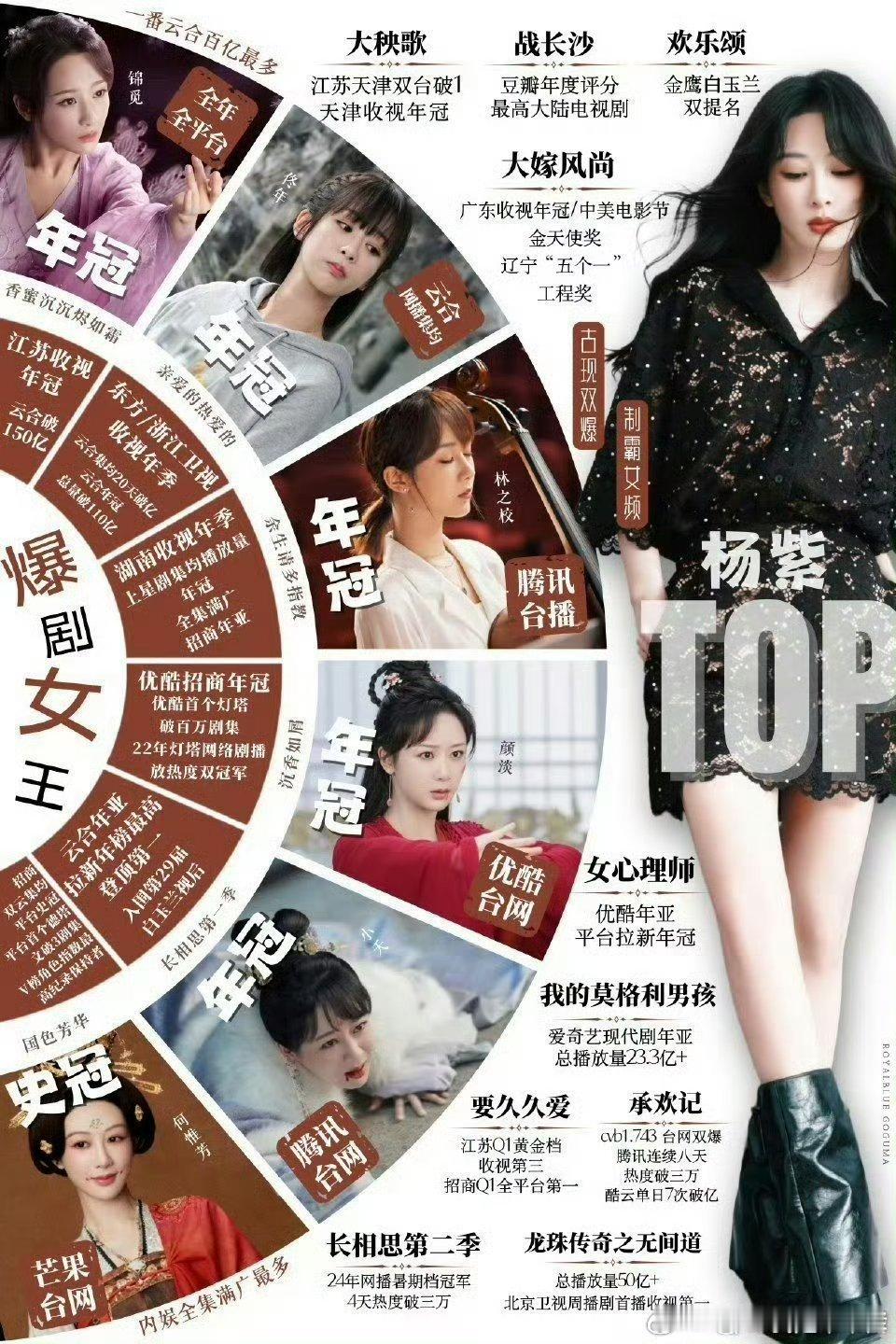 杨紫 杨紫的实绩还需要质疑吗?整个业内公认的顶级top爆剧🌸,童星开始不同年龄有着不同的爆剧,紫粉做的台柱图实至名归,武大郎爬再高桌子也没有武松高,罗爷爷粉丝别来登月碰瓷了!