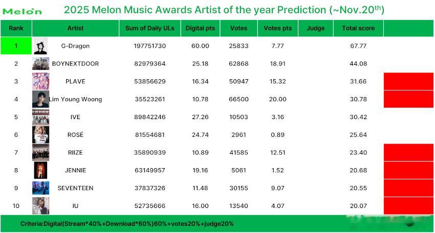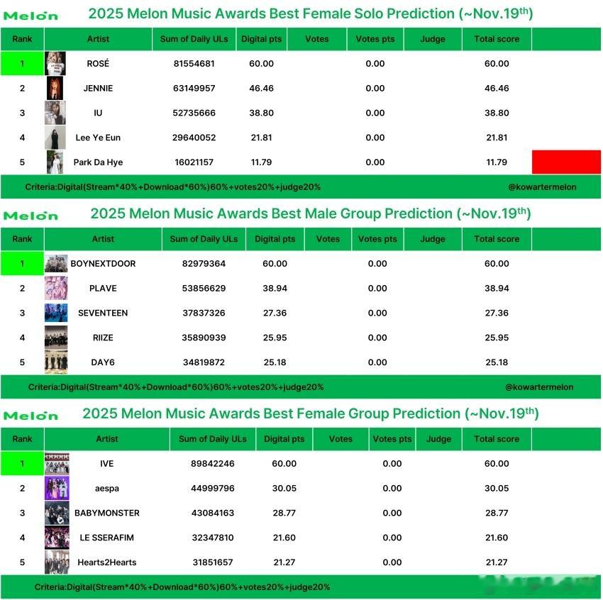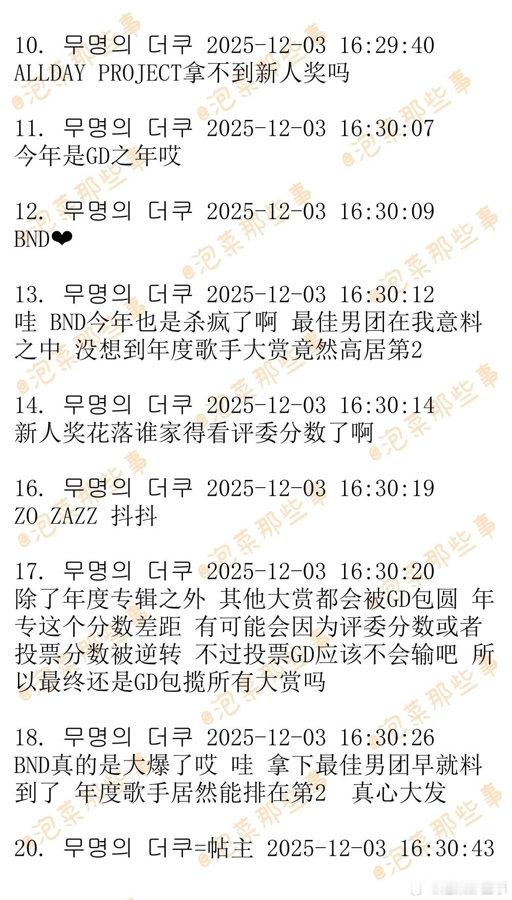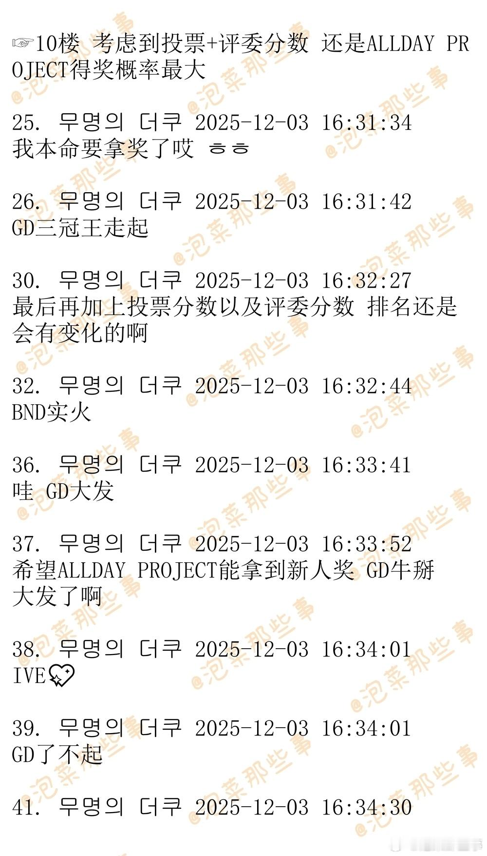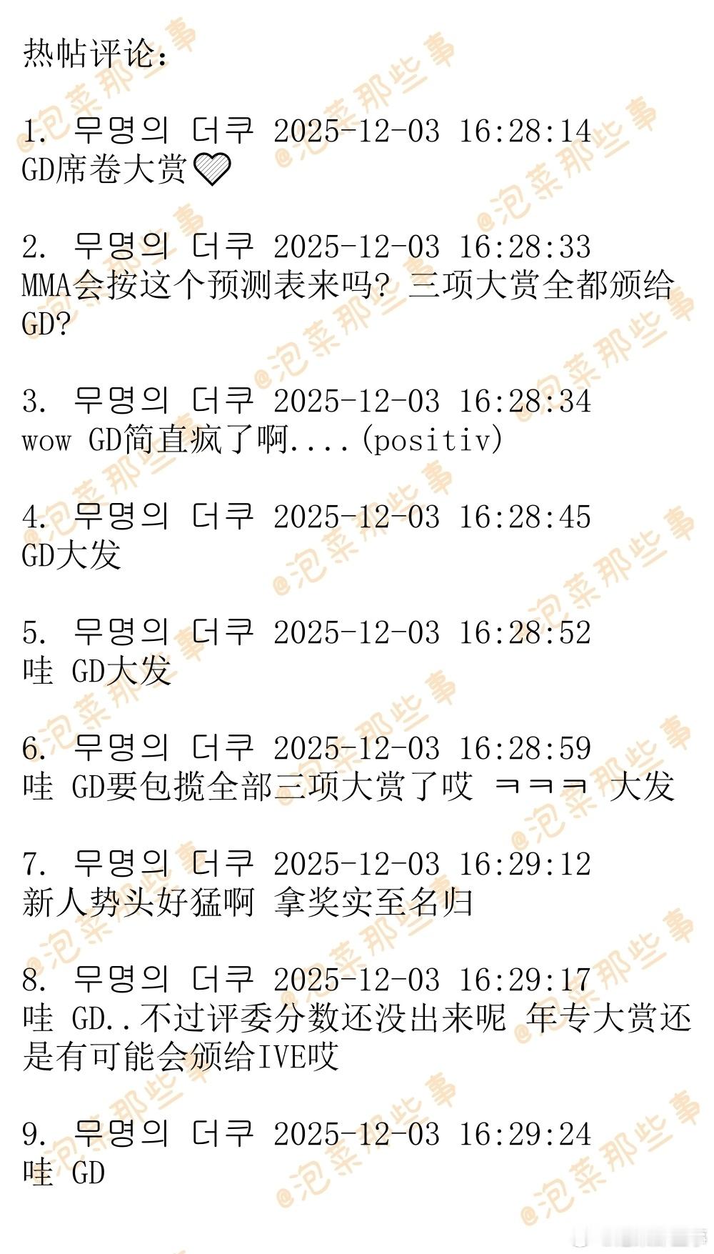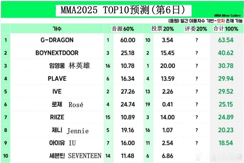 🔥韩网热帖评论翻译🔥2025MMA奖项最新预测表cr.theqoo