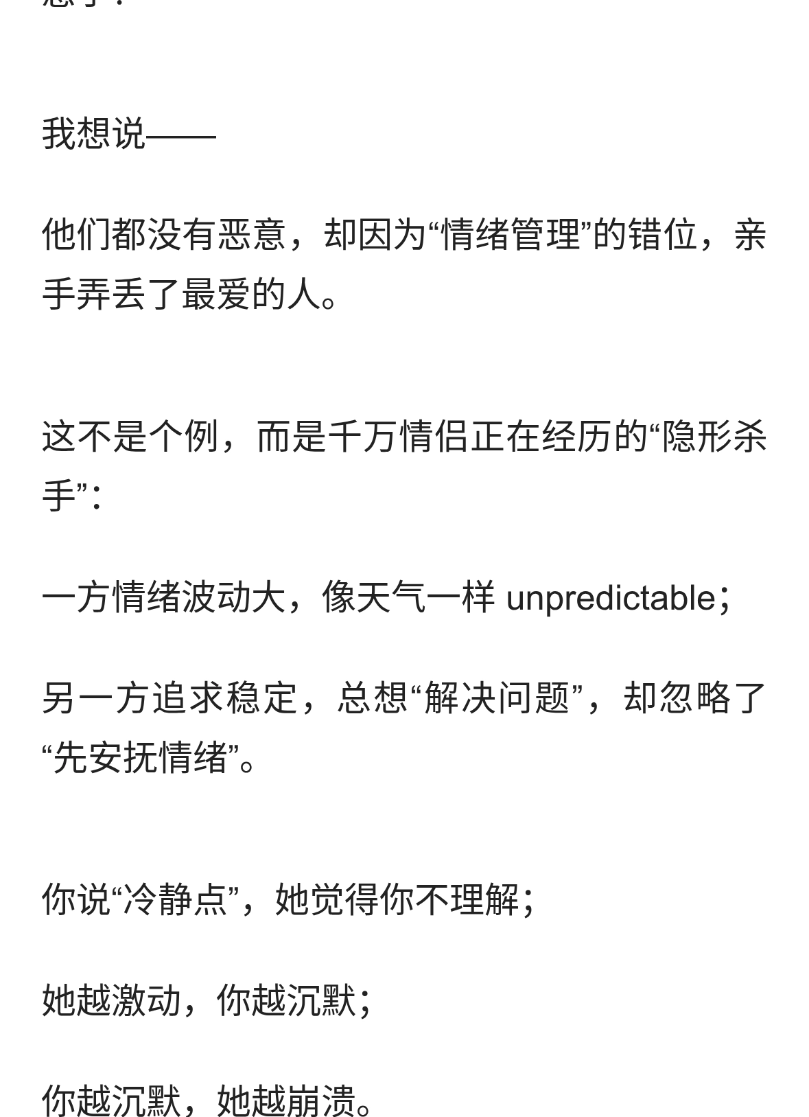 她是情绪在求救,真正毁掉一段感情,不是吵架是没人看见她的崩溃