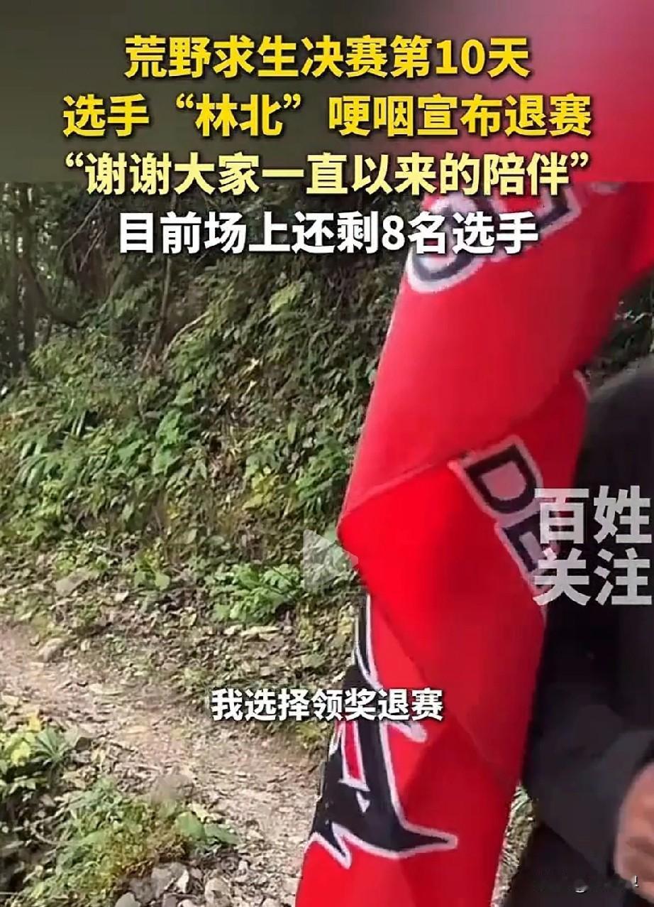 林北退赛爆上热搜!一句“想家了”,戳中多少人的心巴 追了整10天的生存赛,今天刷到林北退赛的消息,直接鼻子一酸!没有受伤、没有肠胃不适,更没有网传的各种意外,他对着镜头笑得坦然:“就是想家了”。 可谁不知道,这简单的五个字背后,藏着太多说不出口的委屈。自从林北在节目里走红,莫名的攻击和猜测就没断过——有人造谣节目组给他开小灶送打火机,有人说他偷偷拿吃的,仿佛他的每一次出镜都带着“特权”。但看过节目的都清楚,他和邻居文车车简直像复制粘贴的生存模式:同住被网友戏称“冷宫”的山洞,不费精力搭庇护所,不忙着开荒种地,就按自己的节奏在节目里生活,却被硬生生扣上“游手好闲”的帽子。 决赛地的物资本来就少得可怜,天气预报说马上还要降温,再熬10天就能多拿2000元奖金,可林北还是选了退赛。我猜,他不是扛不住生存挑战,而是扛不住那些无端的指责,不想再委屈自己罢了。 更巧的是,他和文车车居然同步退赛,像提前约好一样!但两人的离场画风完全不同:一个悄悄咪咪不见踪影,一个前呼后拥全程直播,10万+网友在线陪着下山。其实不管是哪种选择,都是他们的自由啊,没必要过度解读。 林北真的没做错什么,他只是想按自己的方式参加比赛,却要承受这么多恶意。想家从来都不是懦弱,不想被网暴也不是玻璃心,希望大家能多一点宽容,少一点无端的猜测和攻击。祝他下山后能好好和家人团聚,远离这些纷纷扰扰,做回开心的自己~