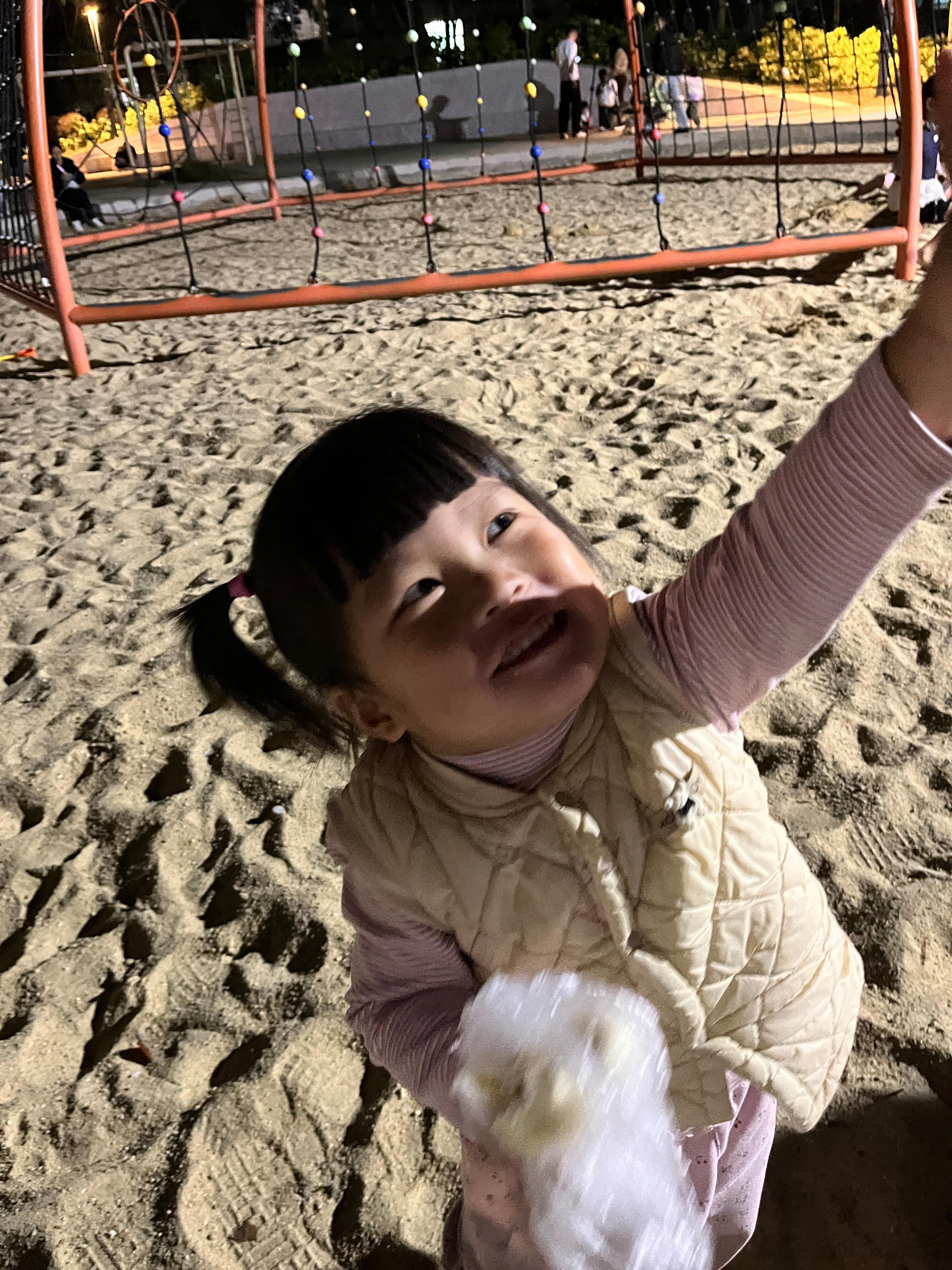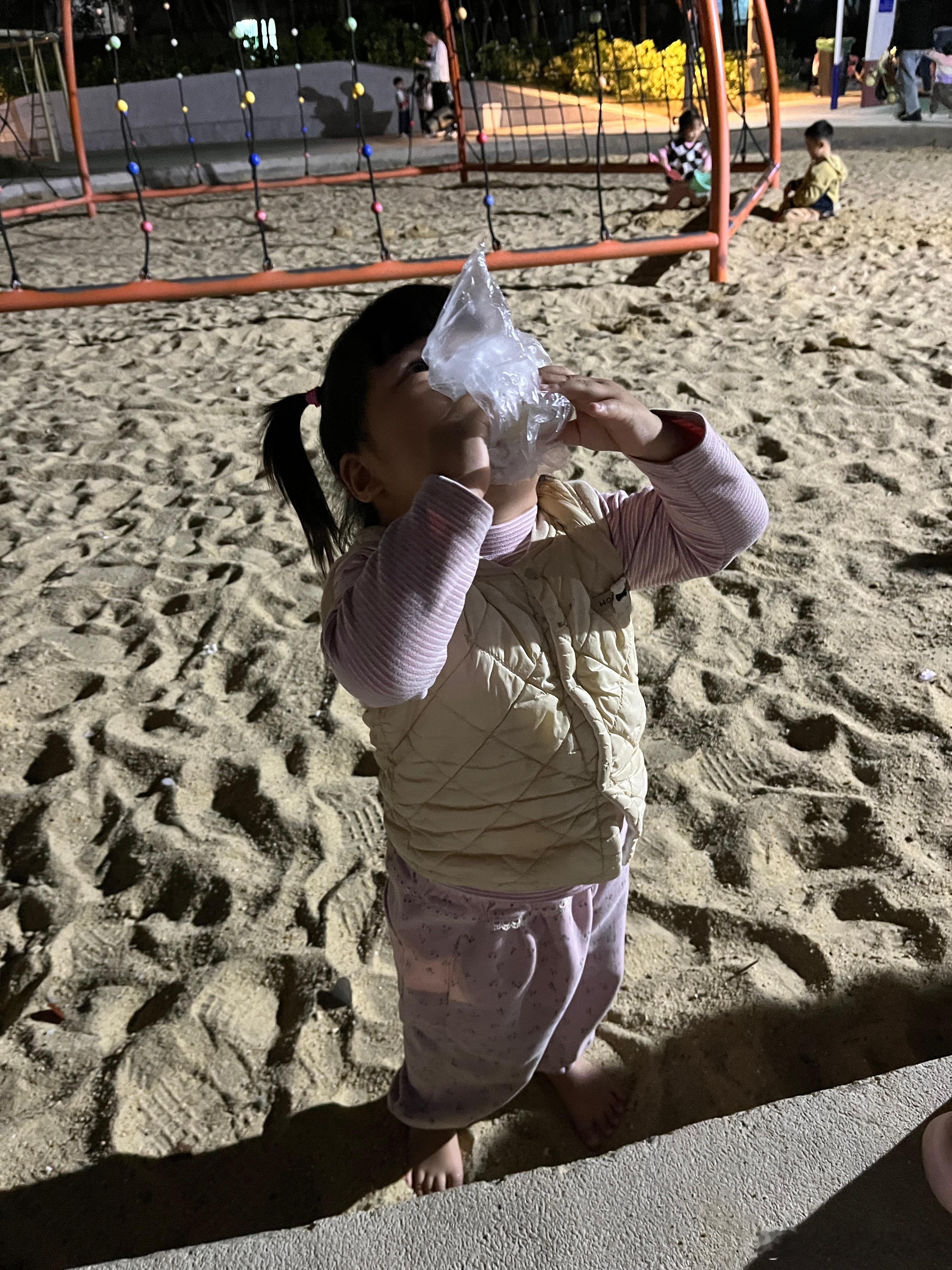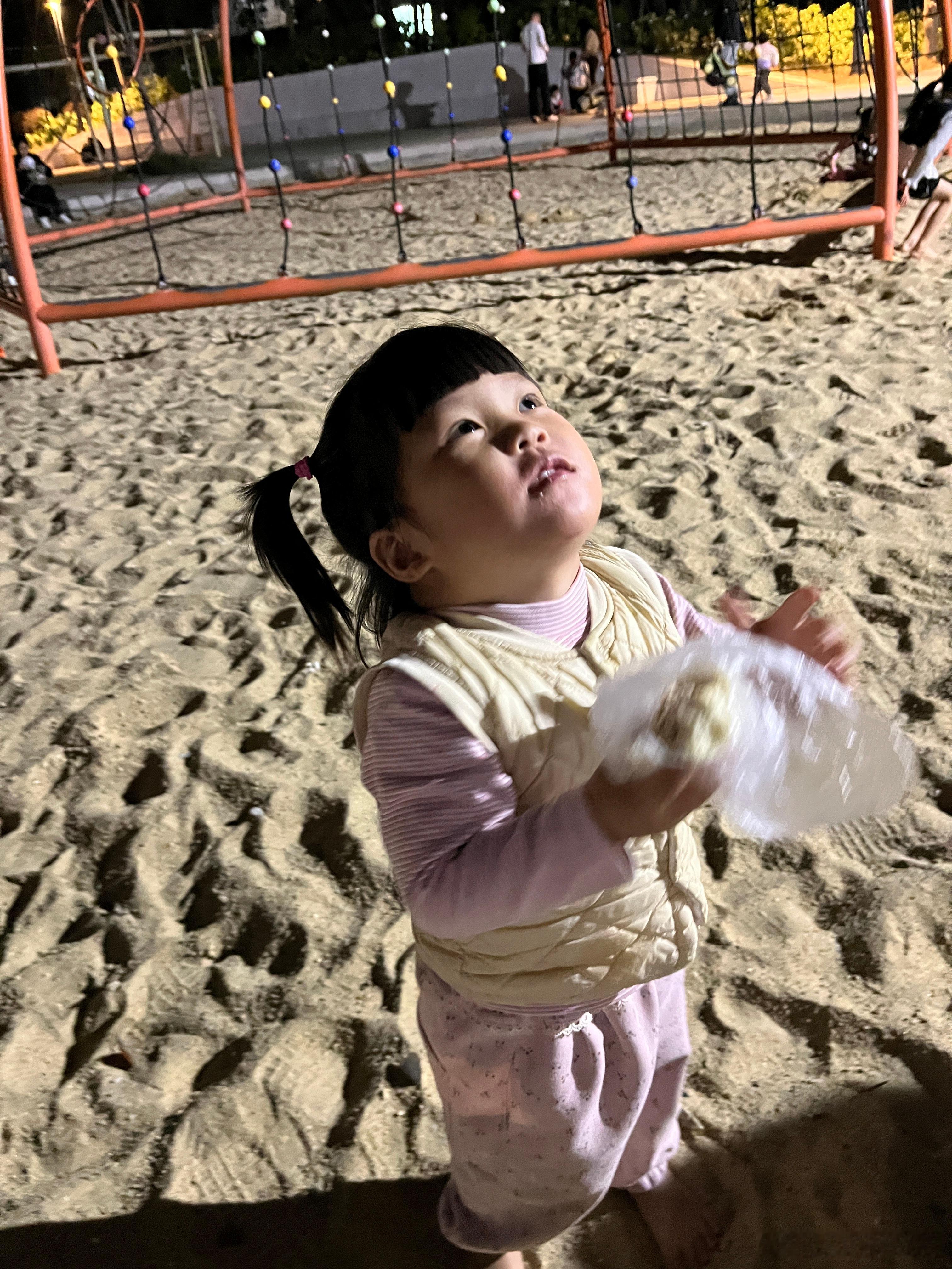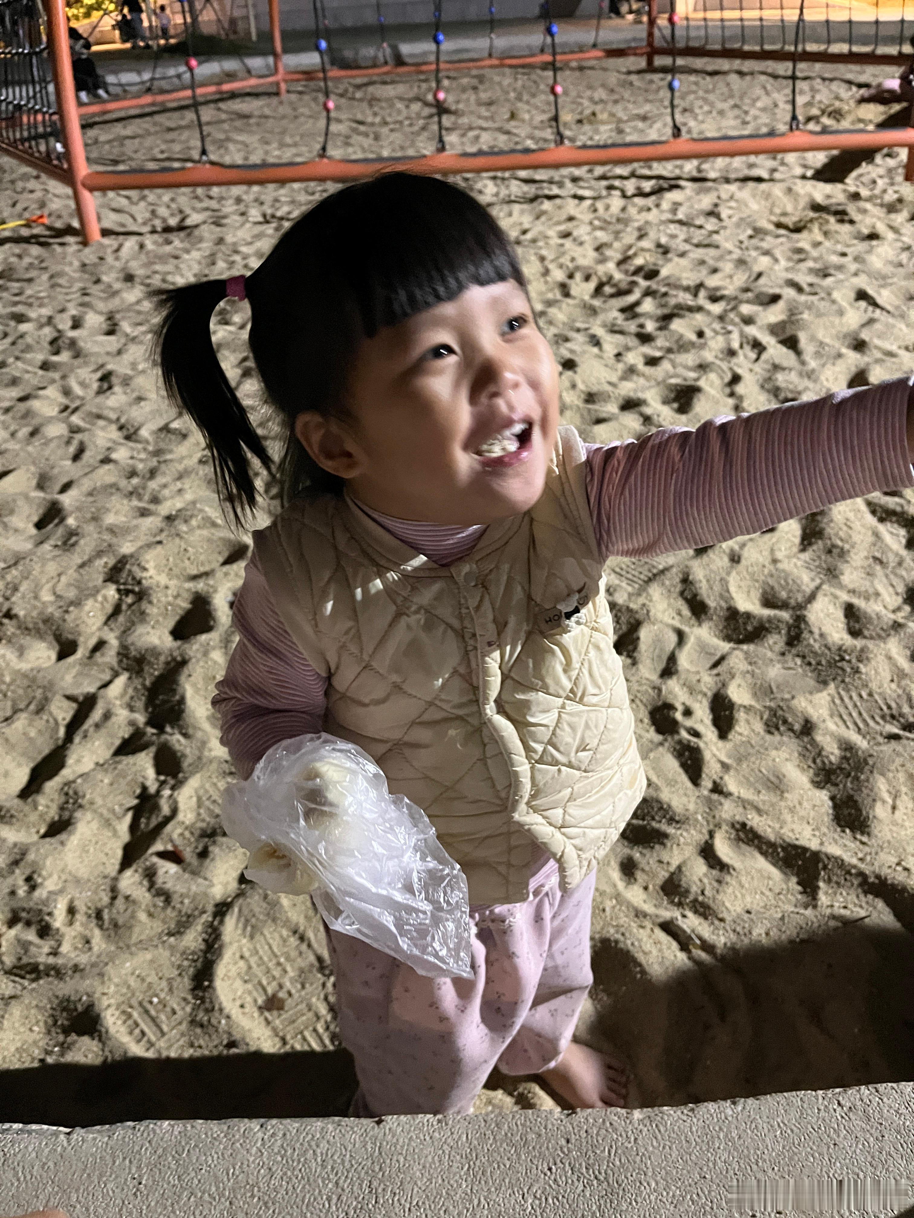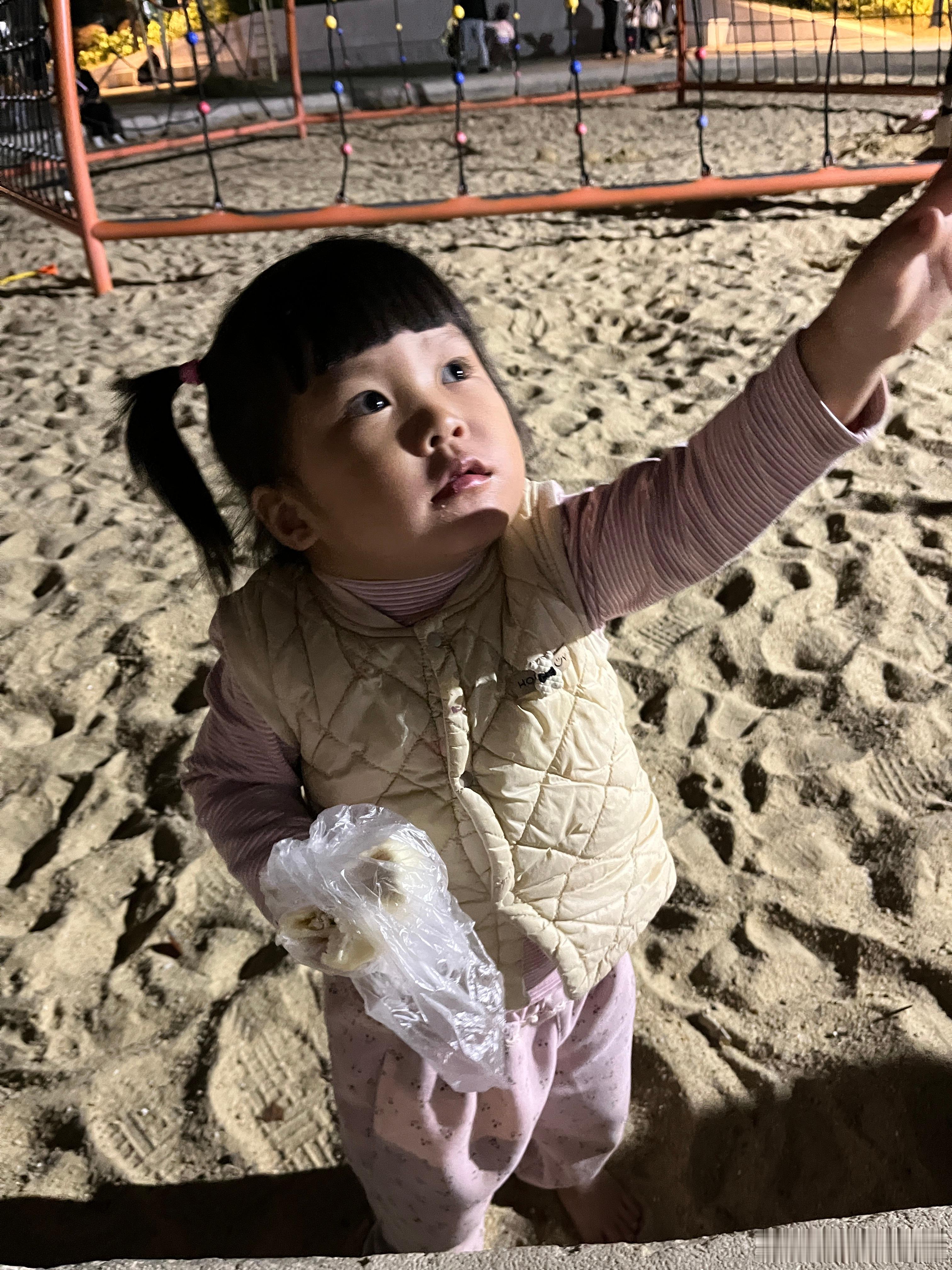 今晚的月亮好圆,这个家伙真的还能再吃一个,她带了一个过来,放在包里,本来说要带两个,我说你吃不完的,等一下又要带回来。图三在看飞机,说要上去抓飞机,小孩子的想象力就是这么丰富。
