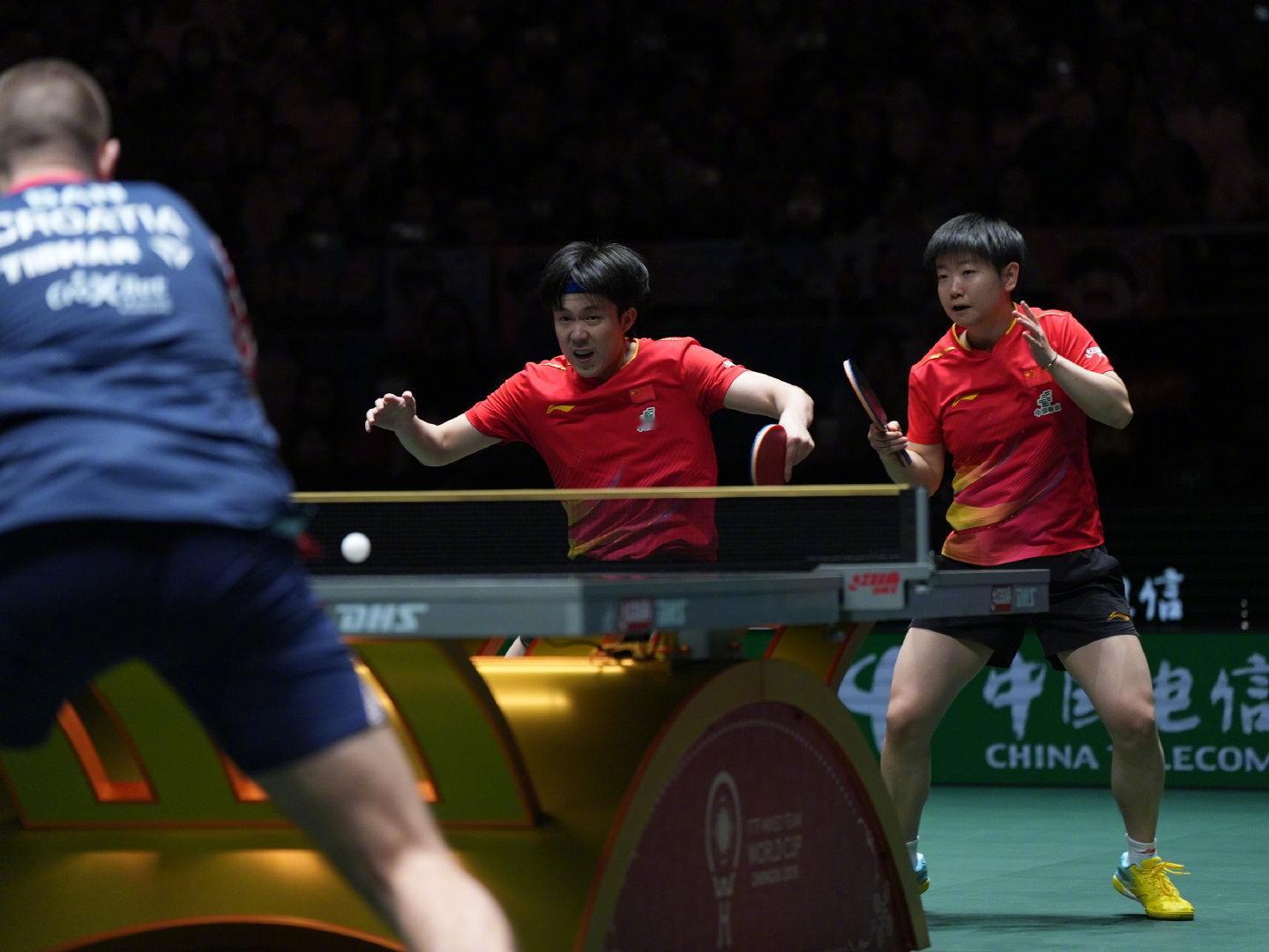 王楚钦孙颖莎vs克罗地亚组合 教科书级碾压!莎头组合20分钟速胜太震撼✨成都混团世界杯第二阶段首战,王楚钦/孙颖莎以3-0横扫克罗地亚组合伊沃·本/阿拉波维奇,三局比分11-6、11-5、11-5,对手总计仅得16分。在"抢8局"新规下,两人全程掌控节奏,孙颖莎精准接发化解旋转,王楚钦反手拧拉暴力输出,侧身让位+补位反拉的默契配合被解说盛赞"世界最强"。这场速胜不仅为中国队拿下关键3分、助力球队8-0零封对手取四连胜,更帮后续出战的队友节省了体力,尽显战术价值。从新加坡大满贯到混团世界杯,这对王牌组合用一场场胜利诠释统治力,卫冕之路稳了!