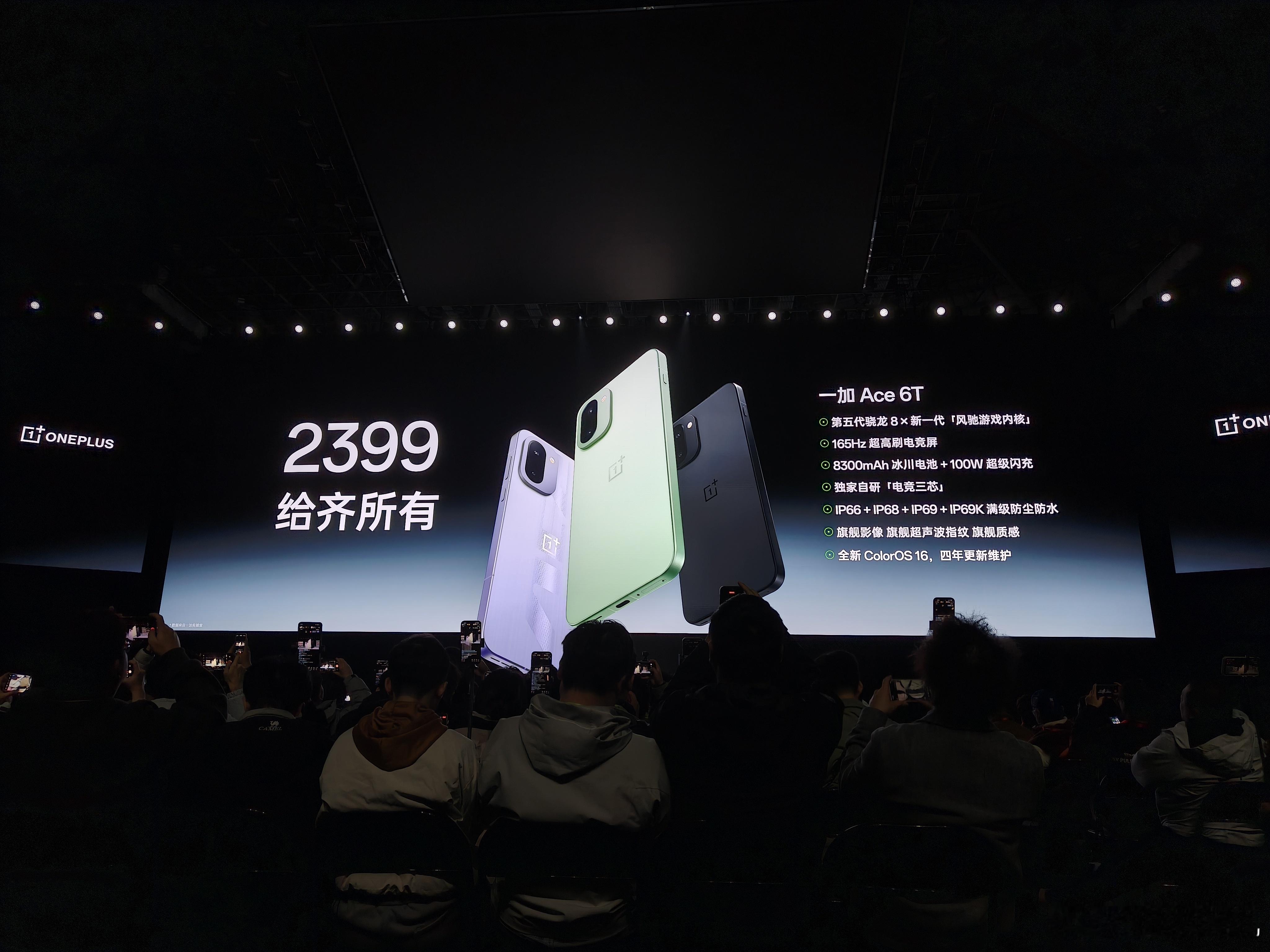 一加Ace6T12+256GB 2399元起步,内存的价格正在持续上涨,2399元起确实非常不容易了,配置应有尽有,喜欢一加可以直接买一加Ace6T新品发布你用过165Hz手机打游戏吗