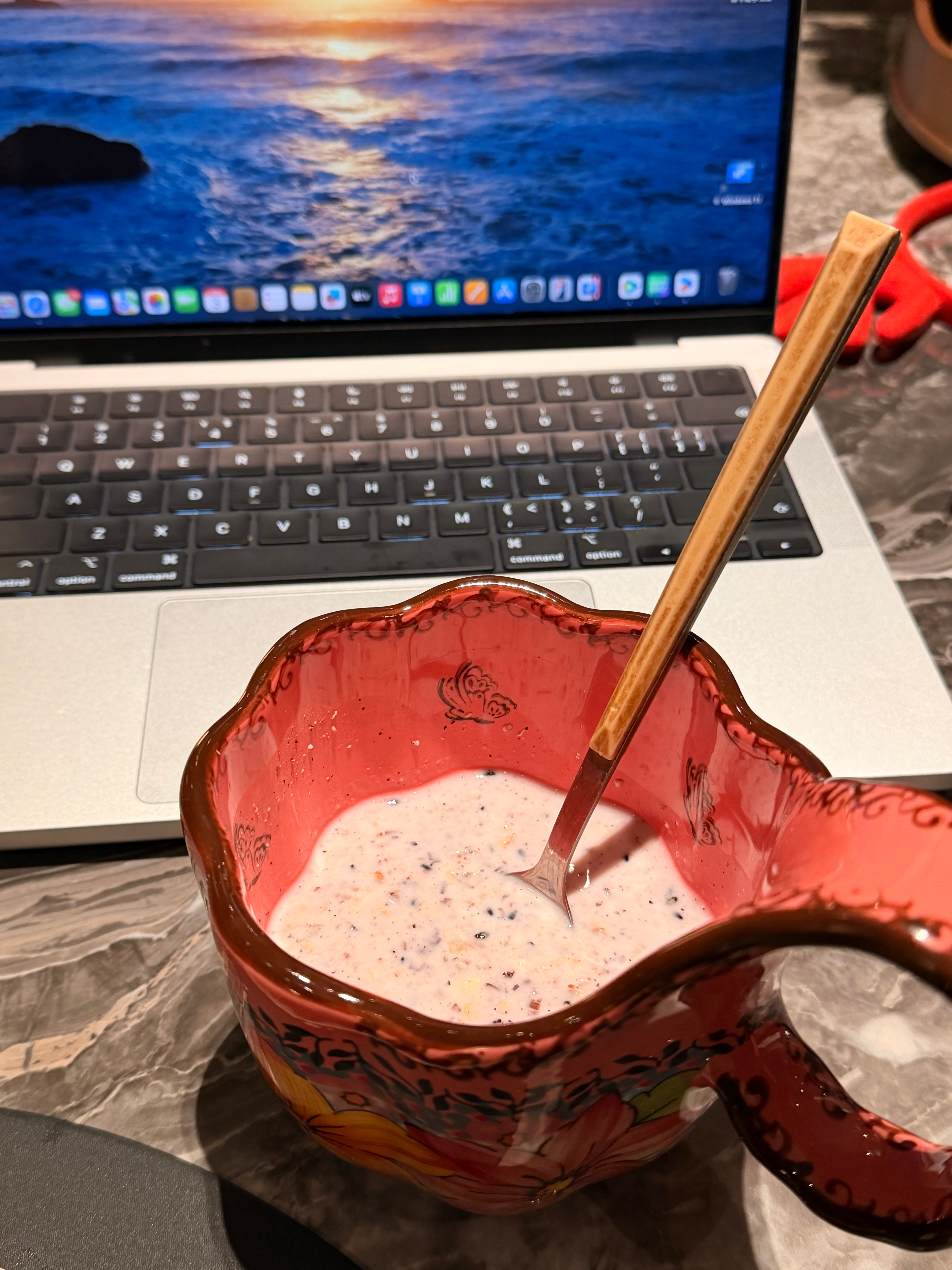 今日练后餐蛋白质,维生素,优质脂肪都有了,还有一份酸奶燕麦粥,都是我自己做的,我