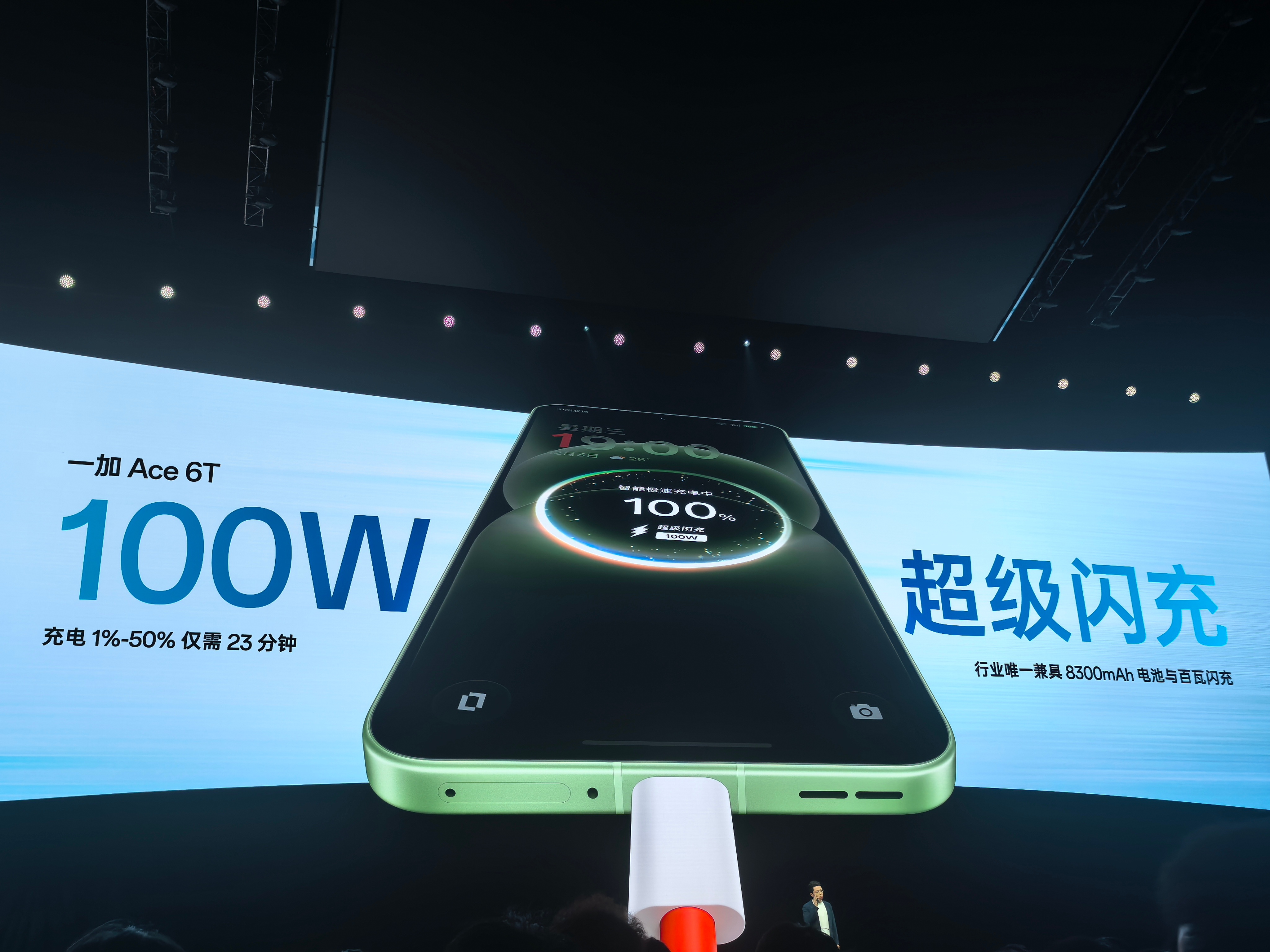 一加Ace 6T的电池续航也卷起来了,高达8300mAh大电池,能连玩10小时游戏。同时还配置100W超级快充,支持旁路充电,有效反向充电。