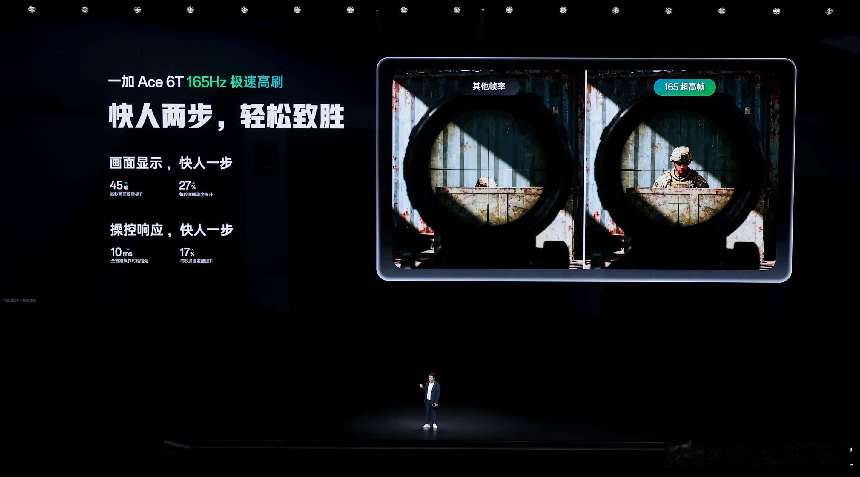 在一加Ace6T新品发布会上,和平精英与一加手机官宣达成技术战略合作伙伴关系,《和平精英》策划总监&电竞中心总监黄鑫龙表示,“玩和平精英,就用一加手机!”未来双方将继续围绕技术开发、产品联调、性能测试与赛场优化等领域展开深入合作,为亿万热爱和平精英的玩家打造战术竞技品类的电竞神器。一加Ace6T新品发布你用过165Hz手机打游戏吗
