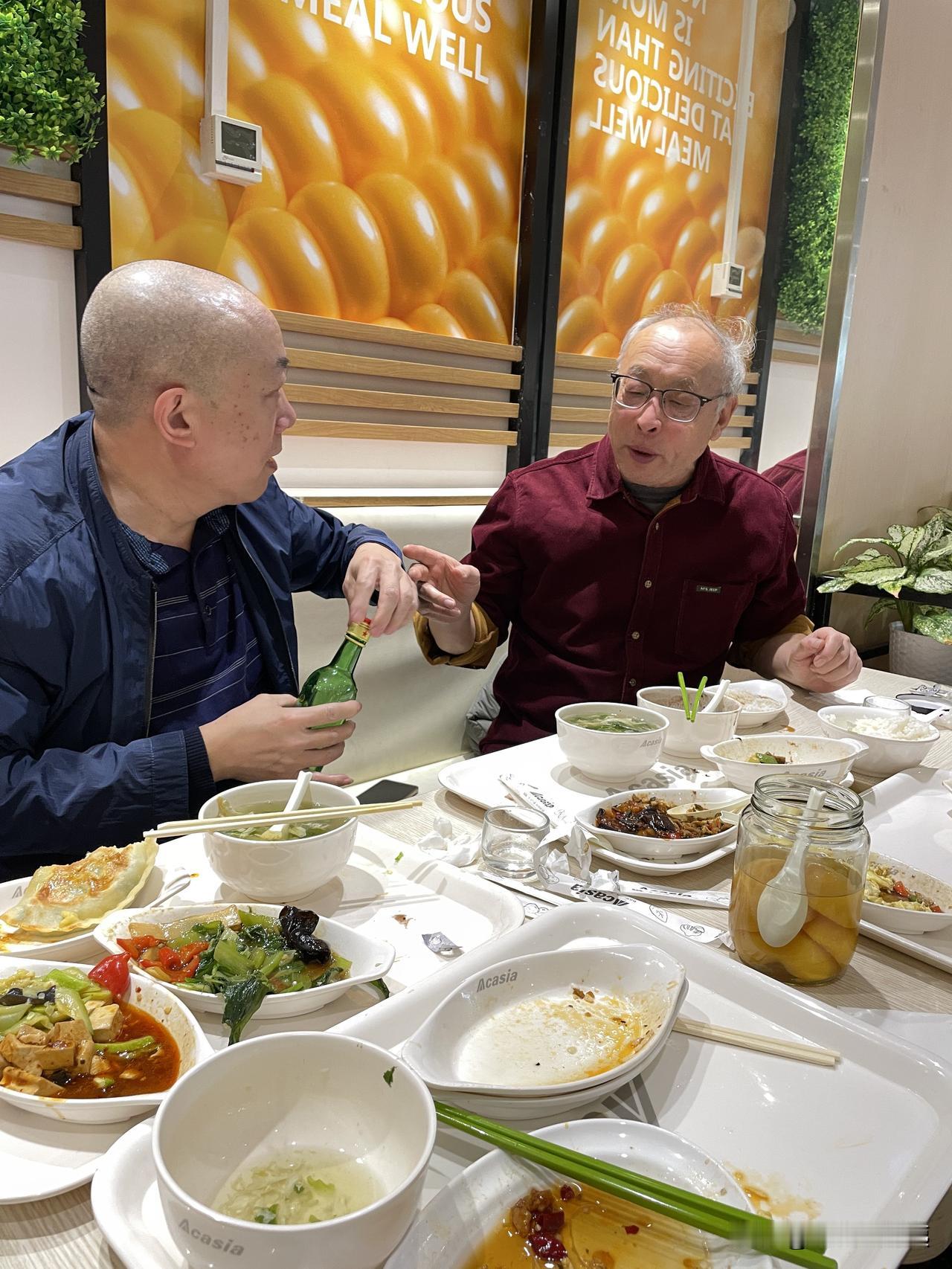 说嘛?一般人过日子,谁天天鸡鸭鱼肉啊?平平淡淡家常饭,更适合我们的胃。 重要的是老友相聚的温馨场景,虽然简单却充满真情实感。 我虽然“五音不全”,但为了不扫大家的兴,还是选择了参与,这种“陪伴” 也是珍惜友情。而饭桌上那瓶自带的酒、大排档的家常菜,恰恰构成了最舒服的“人间烟火气”——没有排场,只有熟悉的味道和熟悉的人。 过日子不是天天山珍海味,而是哪怕一盘 烧茄子、一碗蛋花汤,只要坐在一起的是对的人,就能吃出“满足”二字。这次我没开口唱歌,但我的“到场”已经让朋友们收到了我的心意;下次或许 放大胆点一首《朋友》——跑调也不怕了,反正他们爱的也不是我多年朋友聚餐 的嗓音, 肯定珍惜的是这份情谊。