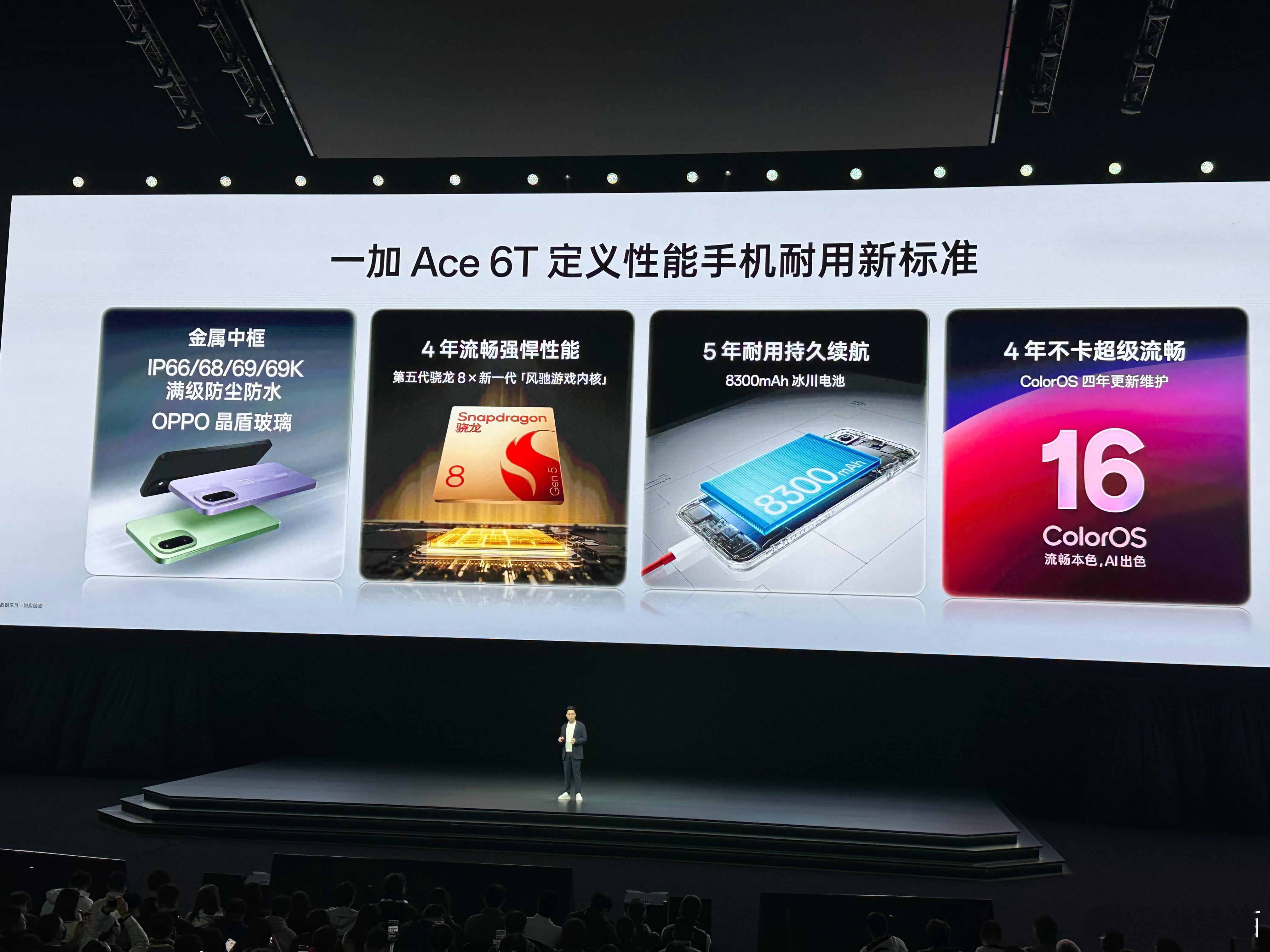 一加Ace 6T43940平方毫米散热面积8300毫安时冰川电池,100W有线充电续航霸榜十大媒体测试榜单旁路供电,有线反充IP68+IP69+IP66+IP69K 满级防水OPPO晶盾玻璃3D超声波指纹识别5000万(索尼IMX906 OIS)+800万双摄一加Ace6T新品发布你用过165Hz手机打游戏吗