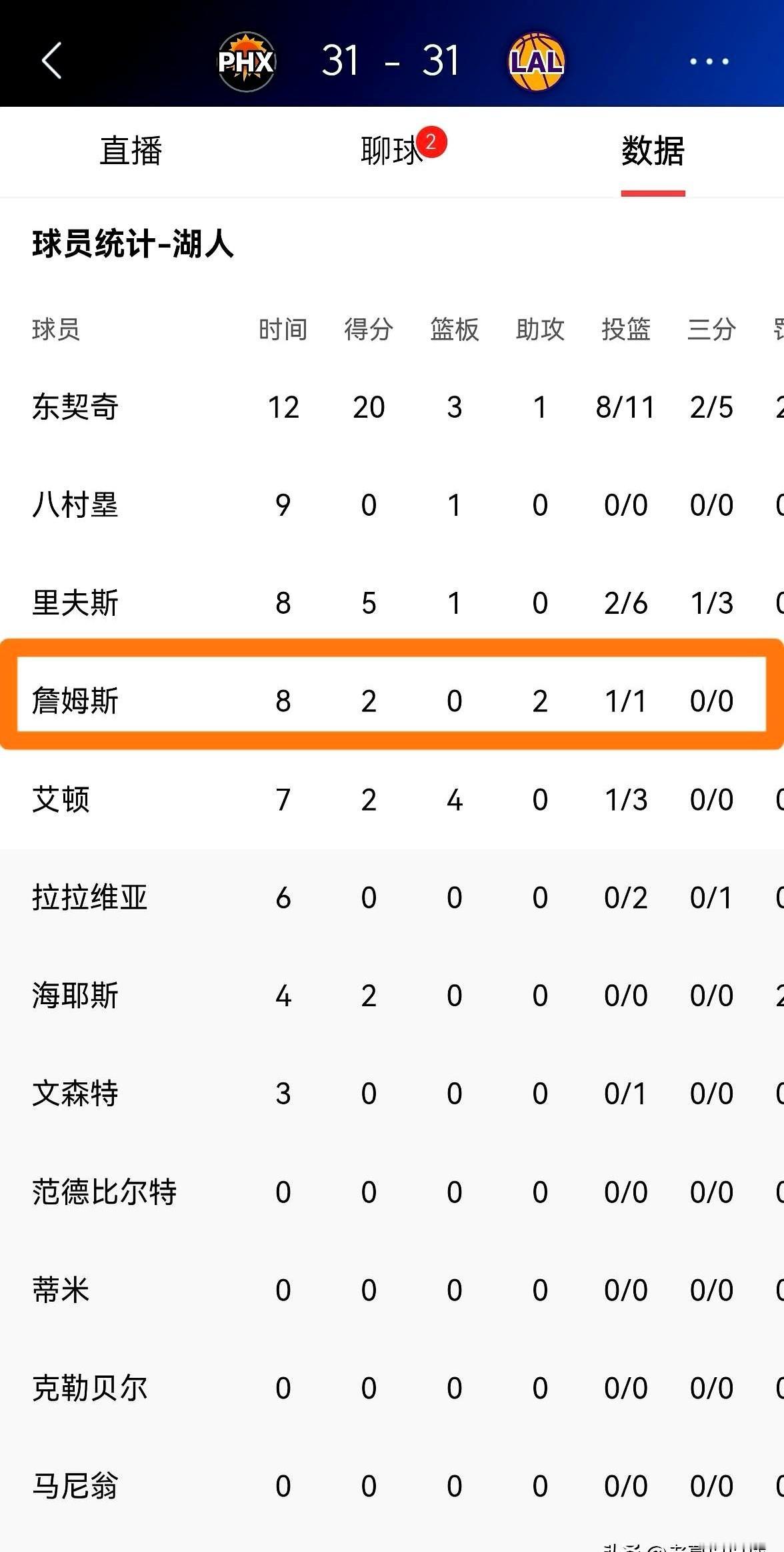 詹姆斯首节仅出手1次,这是在干嘛? 湖人对阵太阳的焦点战,首节打成31平。詹姆斯首发出战8分钟,就出手1次拿了2分。另一边的东契奇,首节一个人就轰下20分,这对比也太强烈了。 有人说他甘当绿叶,但数据不会骗人。老詹最近5场比赛场均才18.4分,比赛季平均的25+分低了一大截。他生涯首节场均7.2分,这赛季掉到4.8分,是近十年最低最低了。教练组也说了,要控制他的时间为季后赛蓄力。 战术分析师觉得,湖人现在在搞团队篮球,詹姆斯首节送出4个助攻,就是在干组织者的活儿。东契奇那边能爆,也是因为太阳防守策略有洞,全去夹布克了,放他单打。这哥们儿赛季场均都35+了,你给他这种机会?简直了。 球迷反应也两极分化。一边觉得老将省体力没毛病,另一边就喷他“高薪低效”。现在看,湖人后面可能会让里夫斯和拉塞尔多持球,给老詹减压。 所以这到底是战术调整还是状态真下滑,还得再看看。反正联盟格局确实在变了。
