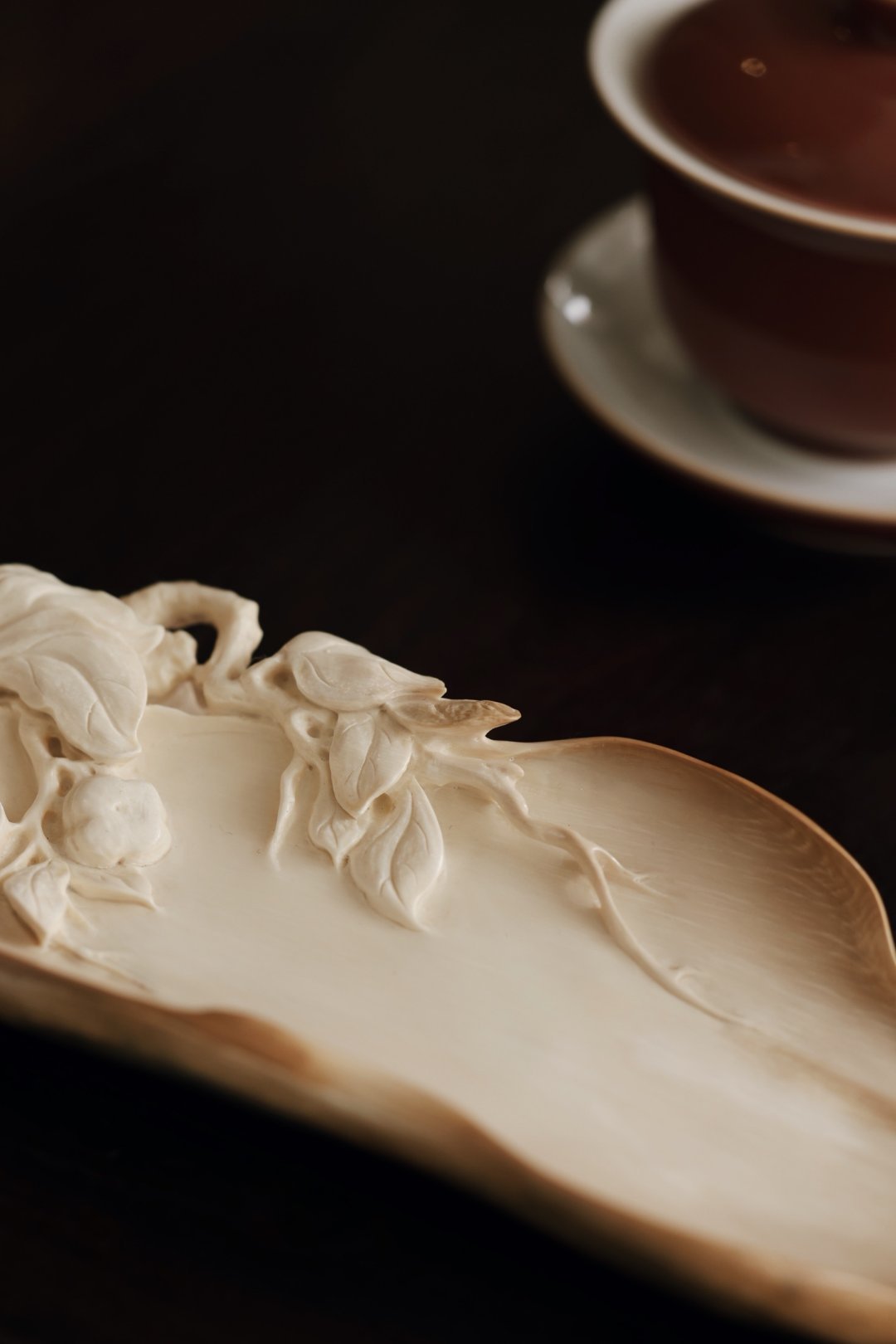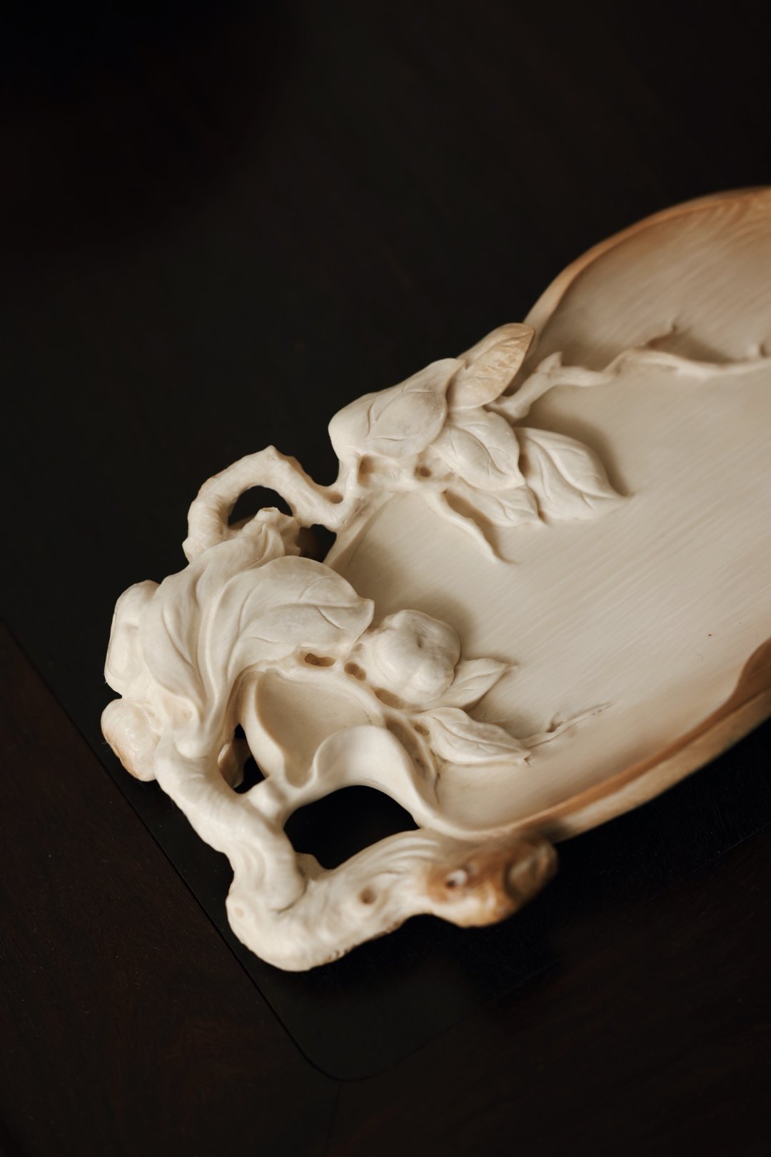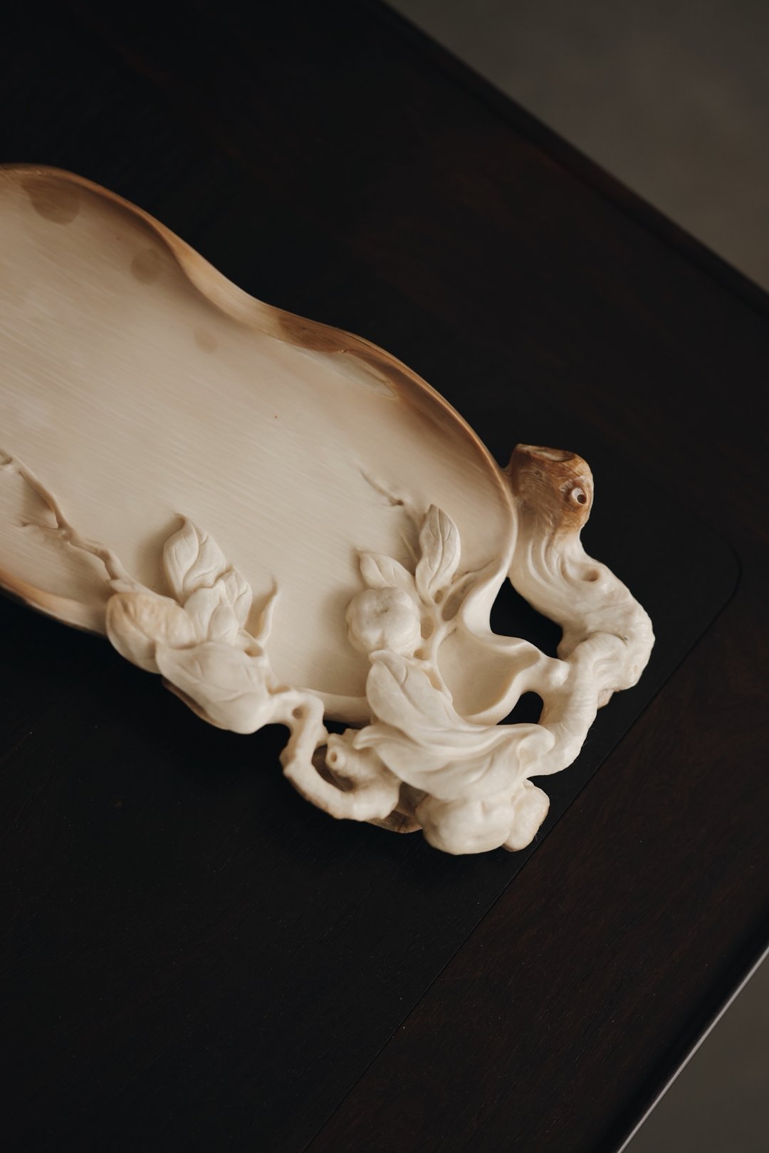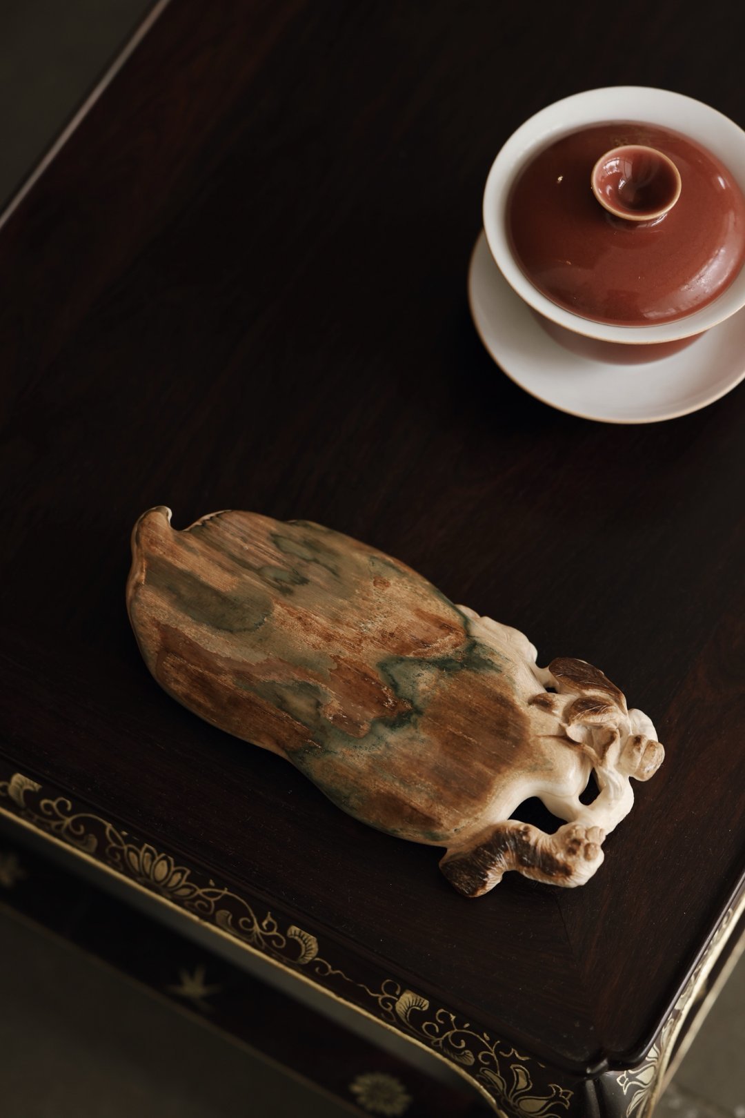 猛犸 | 柿柿如意 茶则咖料色彩独特,妙手巧雕,柿子饱满,枝条粗壮,盈满深林幽野之趣,置茶席赏用,佳寓无限。16.5*8*2.5cm 156g