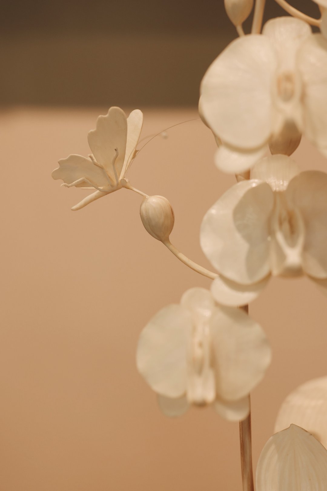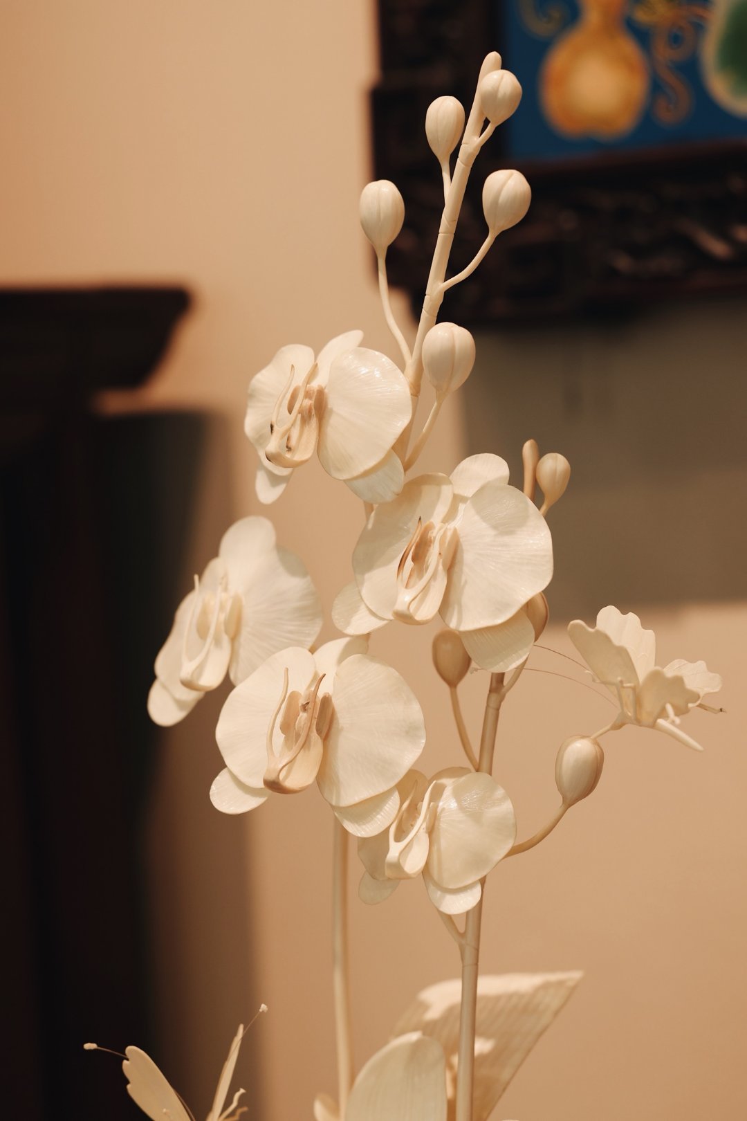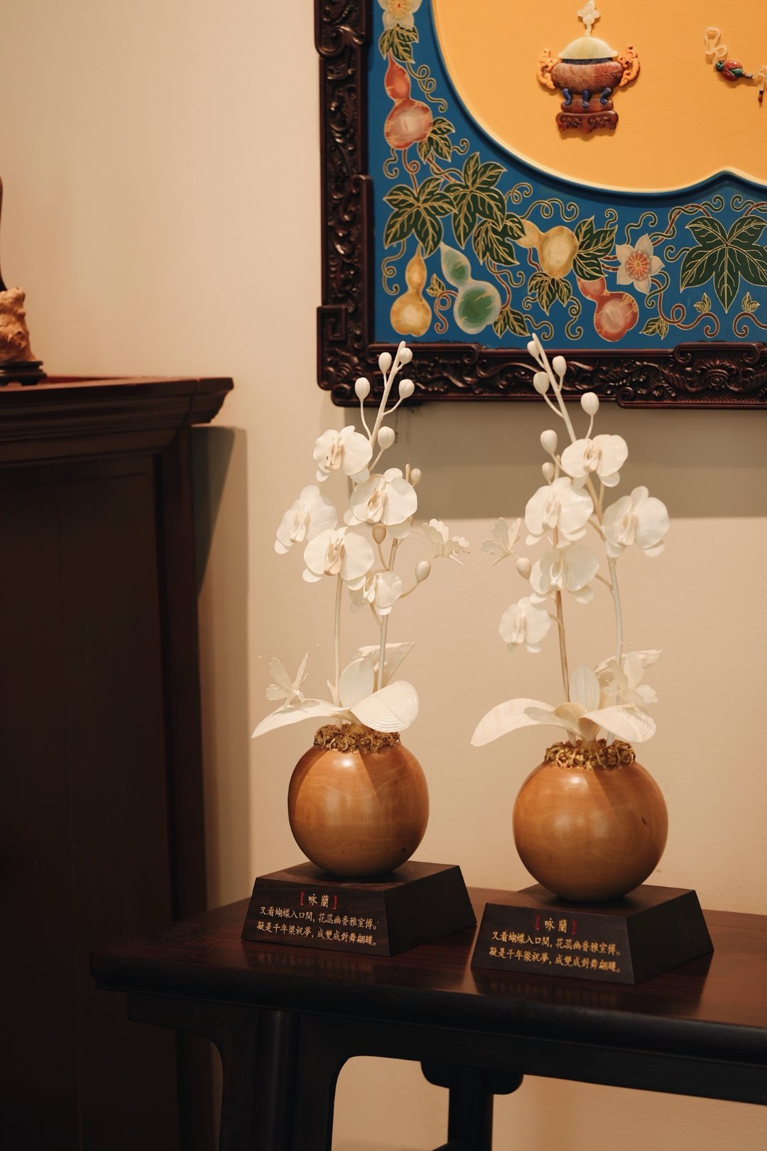 猛犸x黄杨木 | 咏兰 摆件择料温润,色泽清雅,拼接兰花蓓蕾饱满,或娇嫩待绽、或