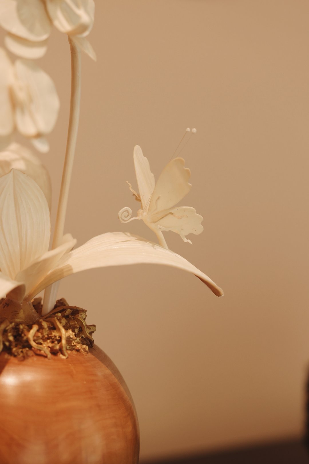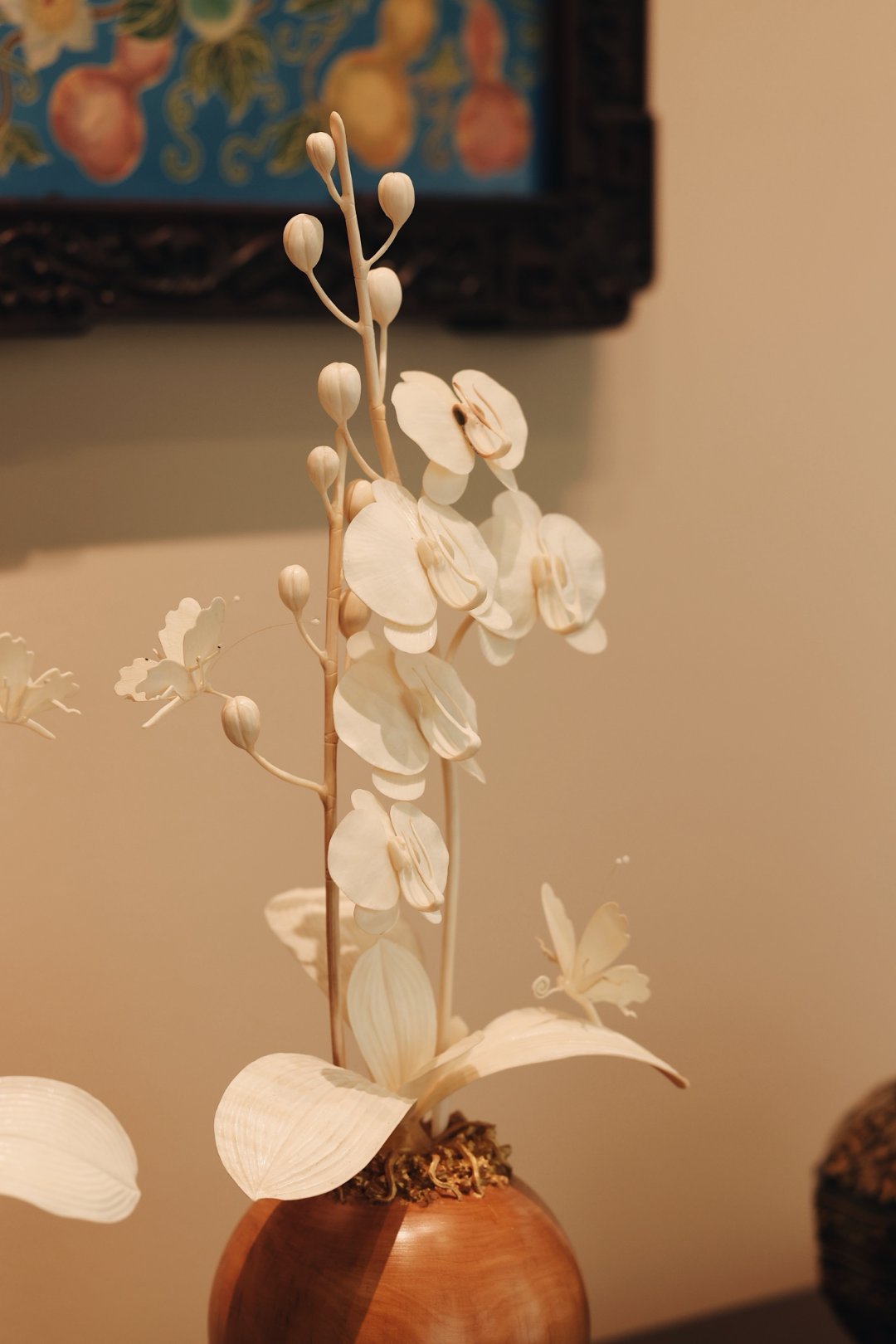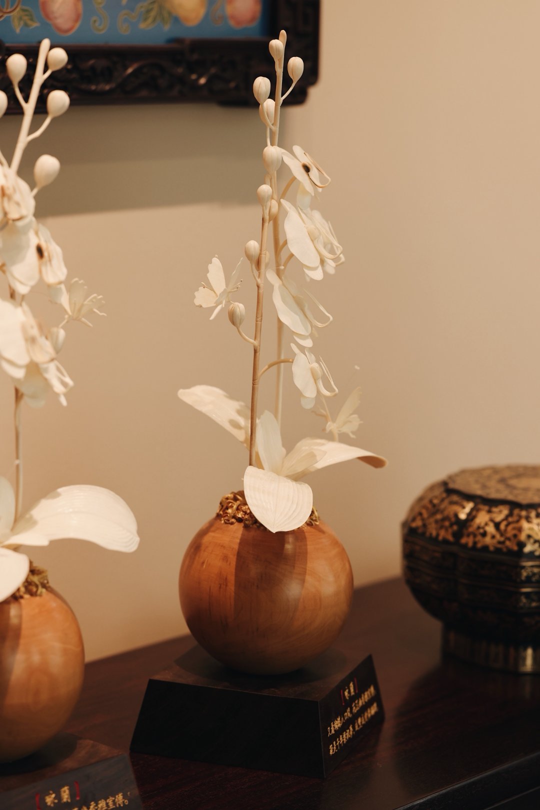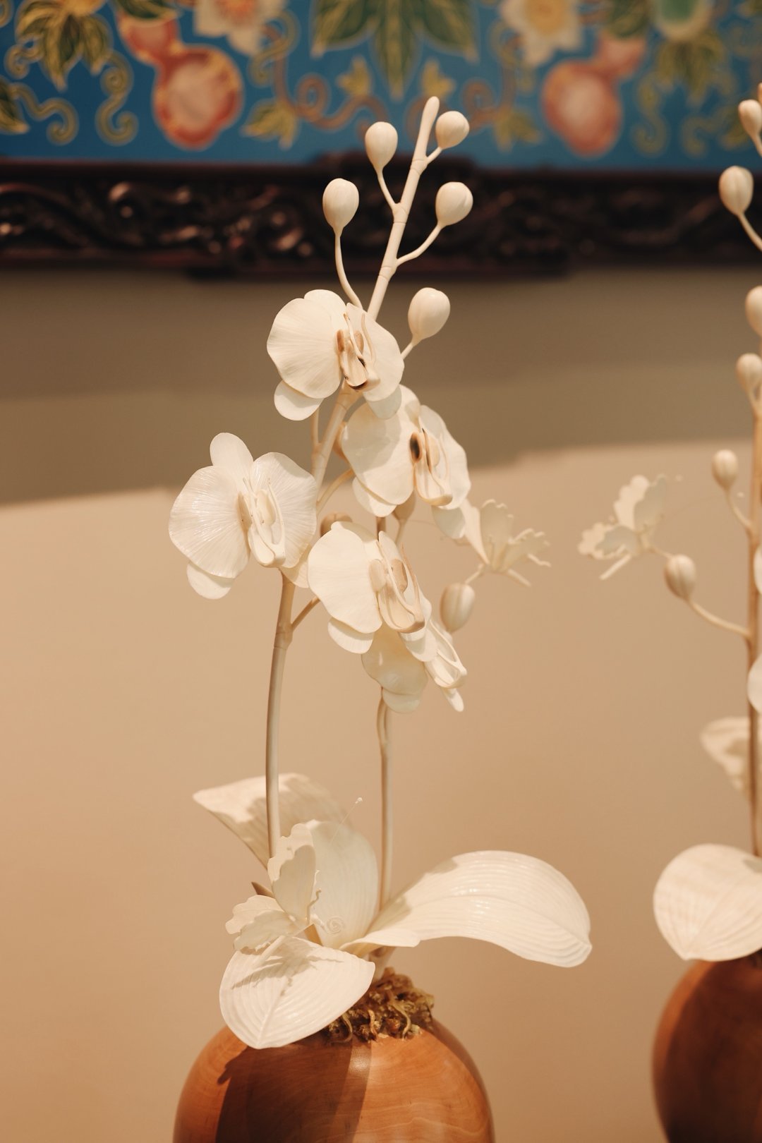 猛犸x黄杨木 | 咏兰 摆件择料温润,色泽清雅,拼接兰花蓓蕾饱满,或娇嫩待绽、或