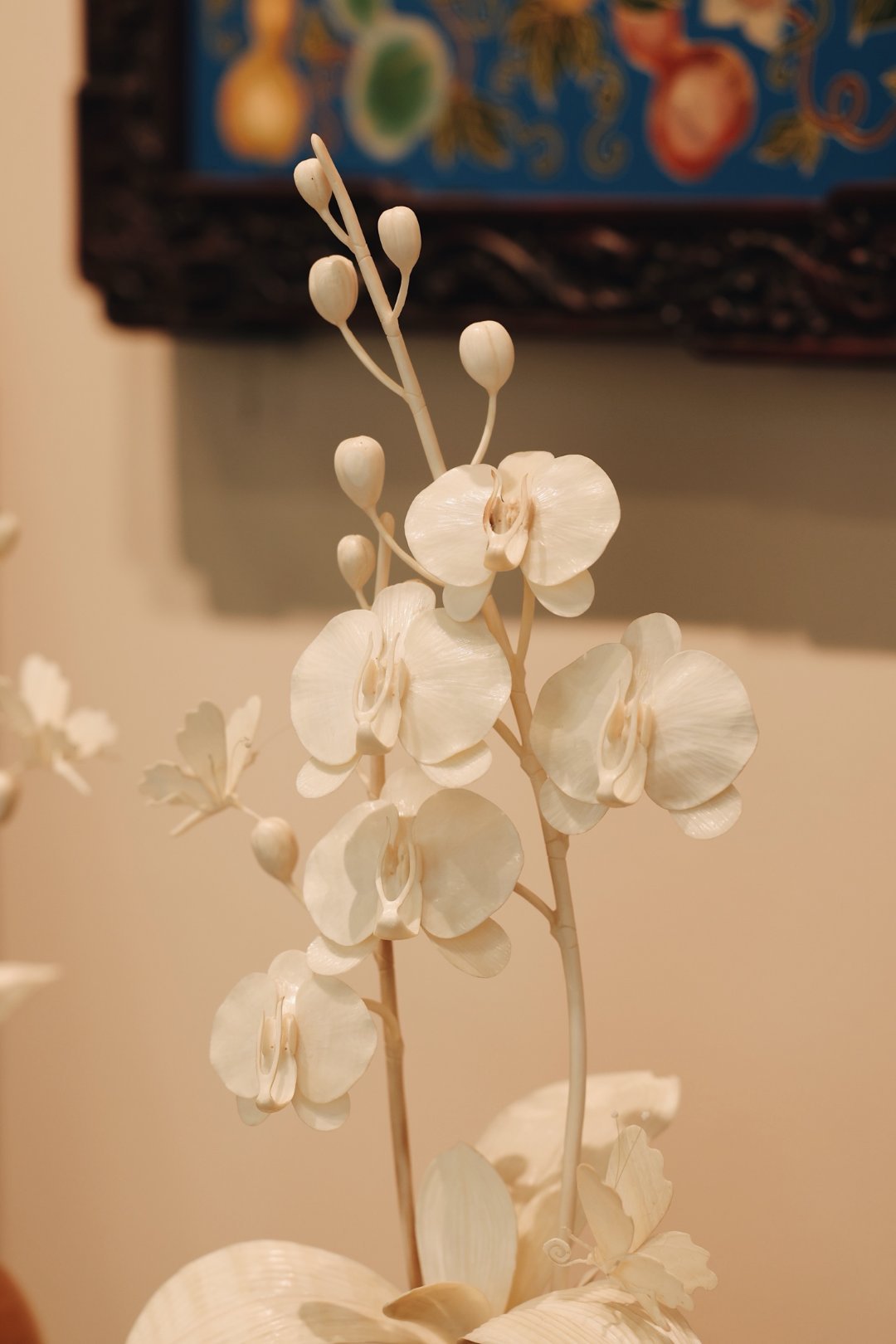猛犸x黄杨木 | 咏兰 摆件择料温润,色泽清雅,拼接兰花蓓蕾饱满,或娇嫩待绽、或蓬勃盛放,雕琢精细,线条流畅,构思奇巧,陈设居室,气质清丽优雅。17.5*14*48.5cm 1963g