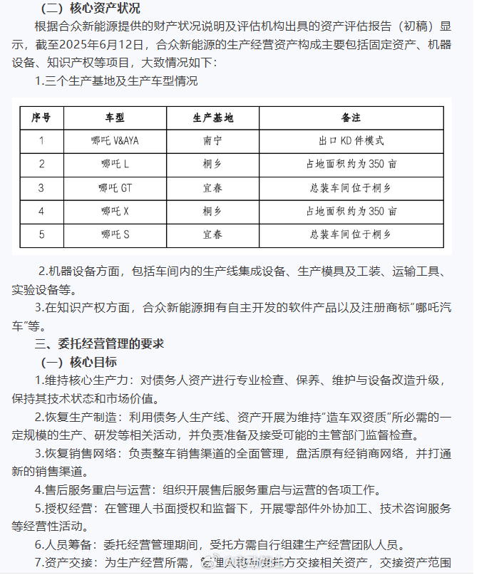 哪吒母公司合众发布关于重整计划的公告,公开招募经营管理受托方。 造车...