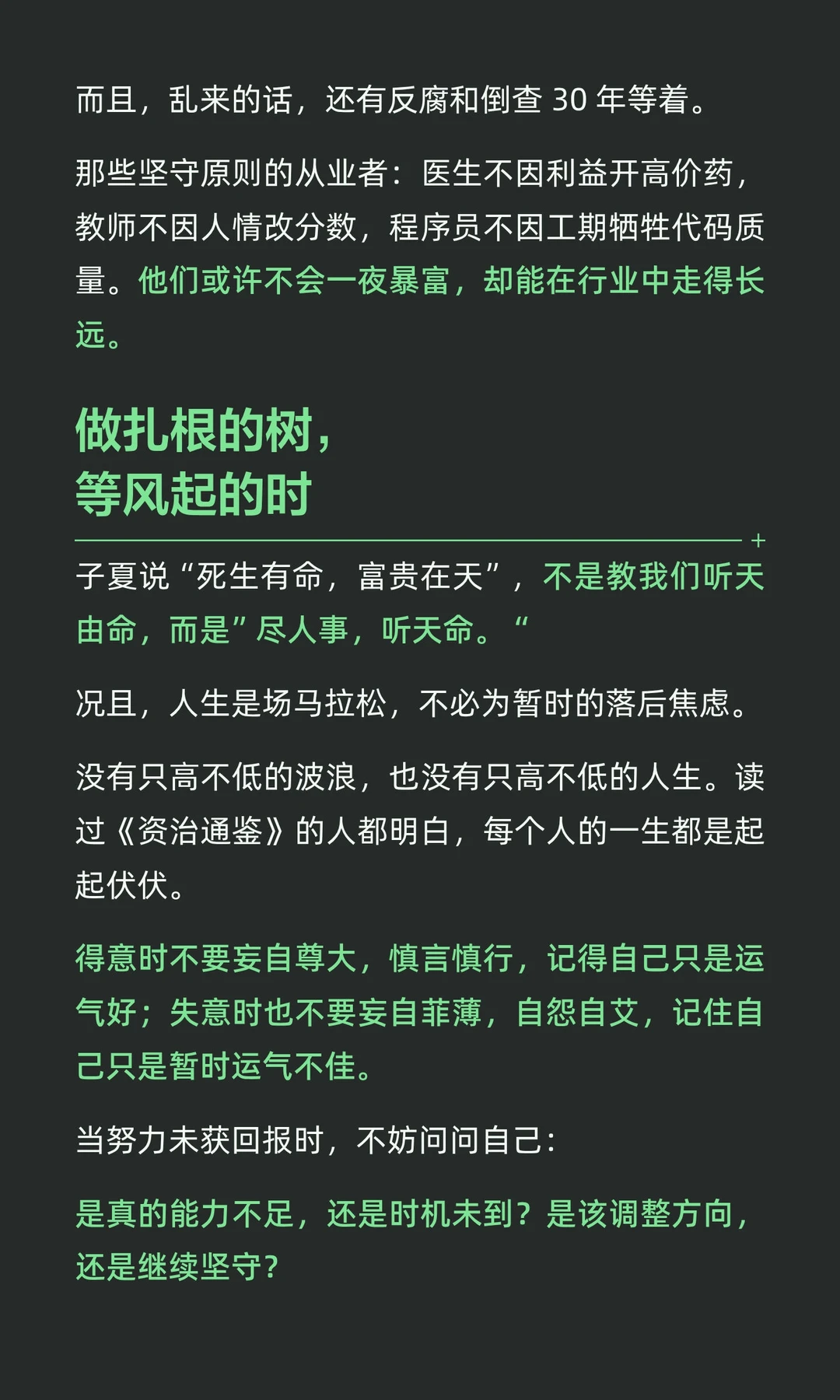 保持清醒的坚持,修炼自己,做好自己能做的事,守心守道,等待时机,终将迎来属于自己的“东风”。