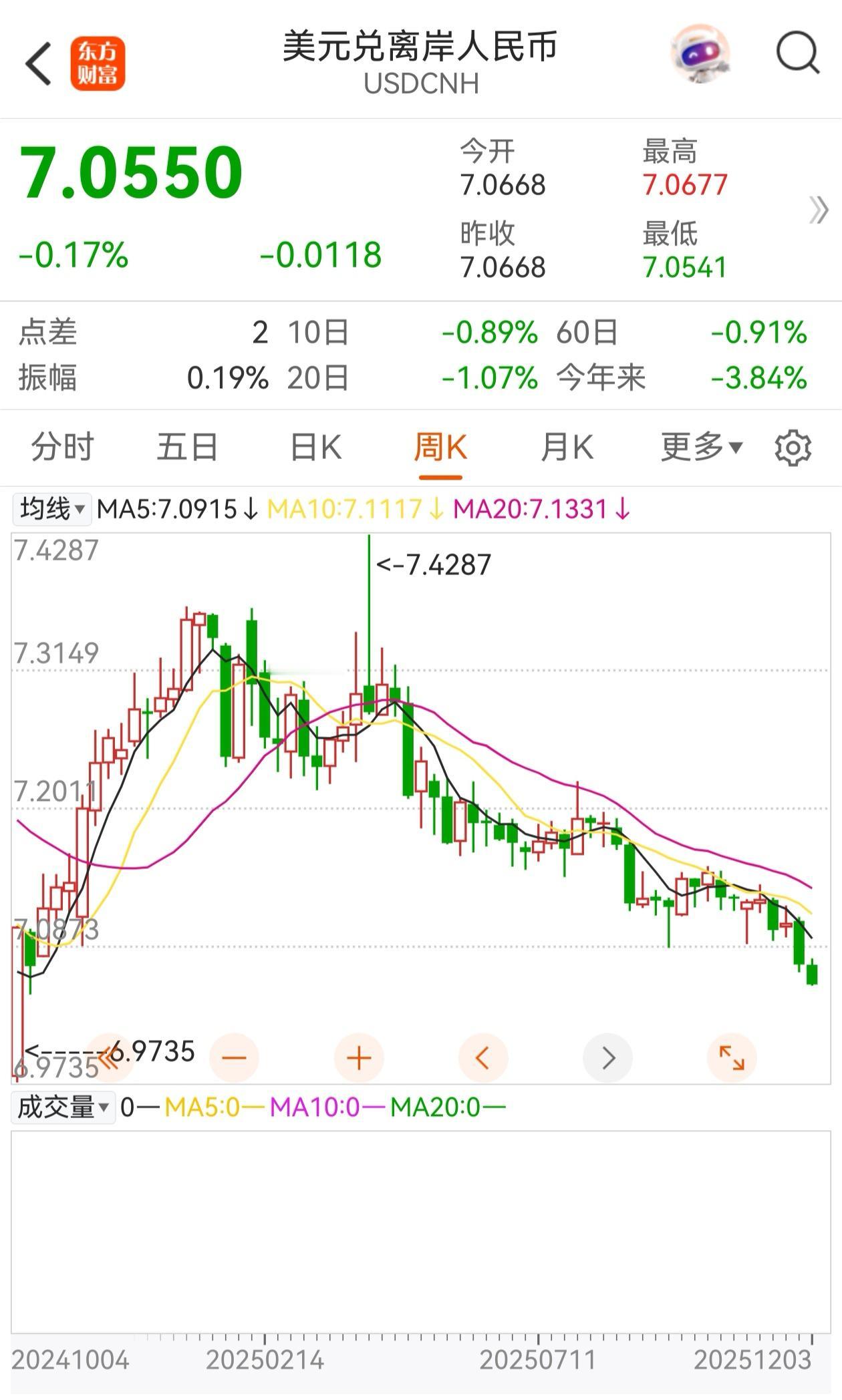 有加速趋势,算是最近不多的利好吧,这种走势一旦在周线上确立,那就是战略级转向,跑出去的钱会面临美元贬值和人民币升值两面夹击,资本流向会出现大的改变。