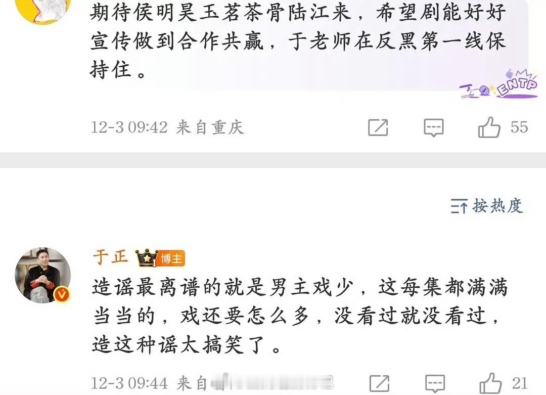 于正辟谣玉茗茶骨侯明昊戏份少。郫县传这部剧男主戏份少滤镜难看没cp感,表示男主戏份“每集都满满当当的。”目前玉茗茶骨预约人数破百万于正骂人秒删