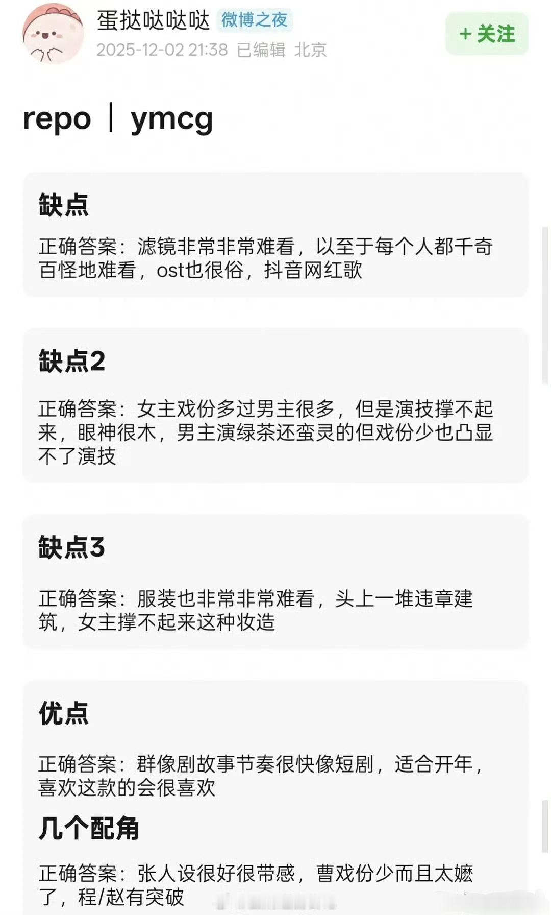 于正辟谣玉茗茶骨侯明昊戏份少。郫县传这部剧男主戏份少滤镜难看没cp感,表示男主戏