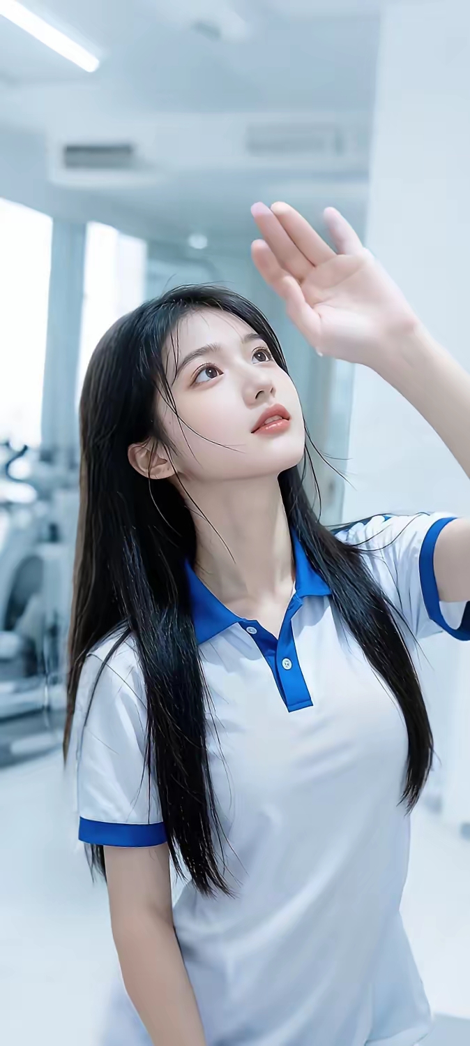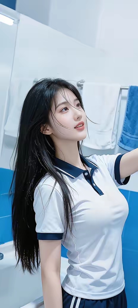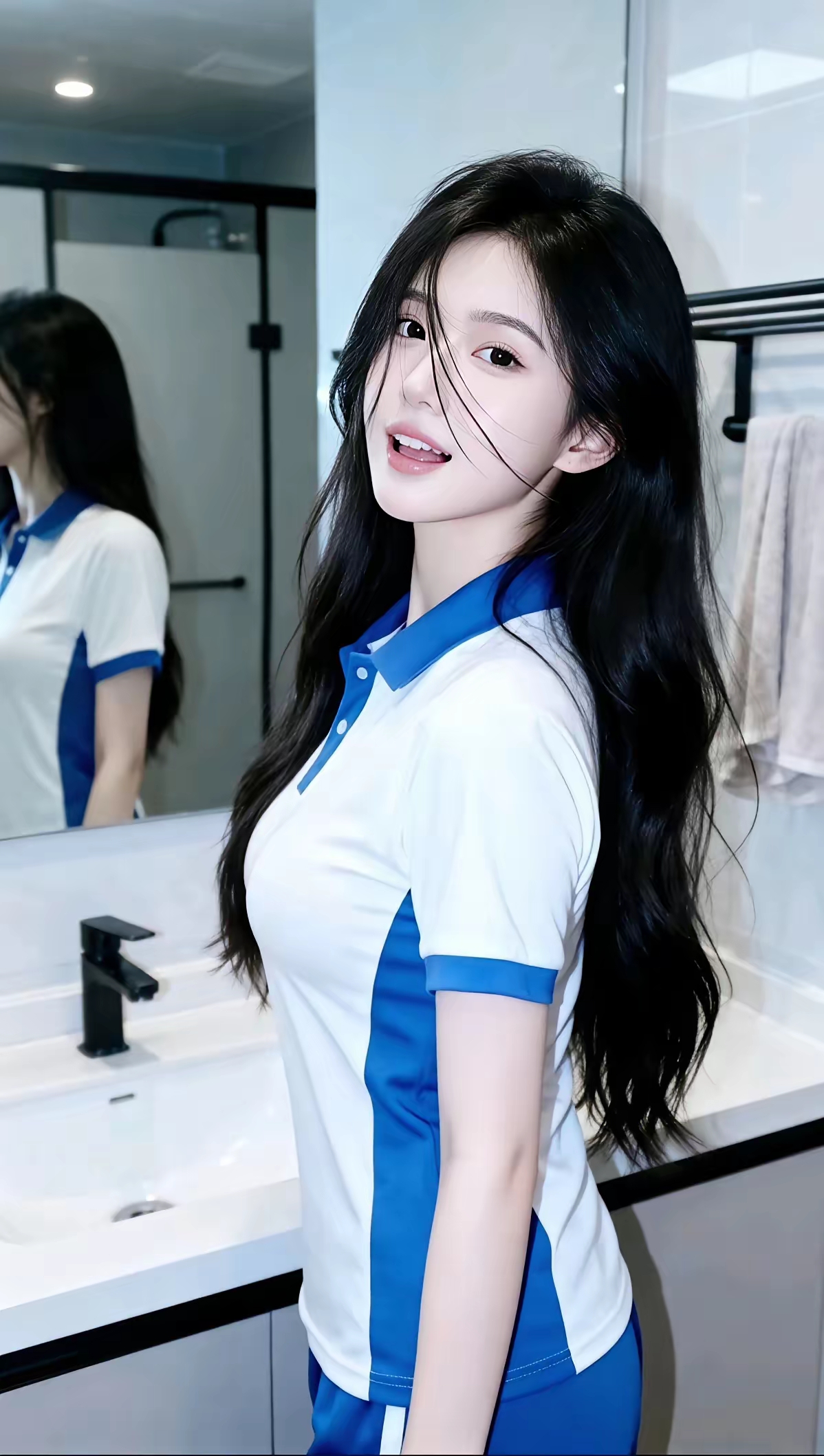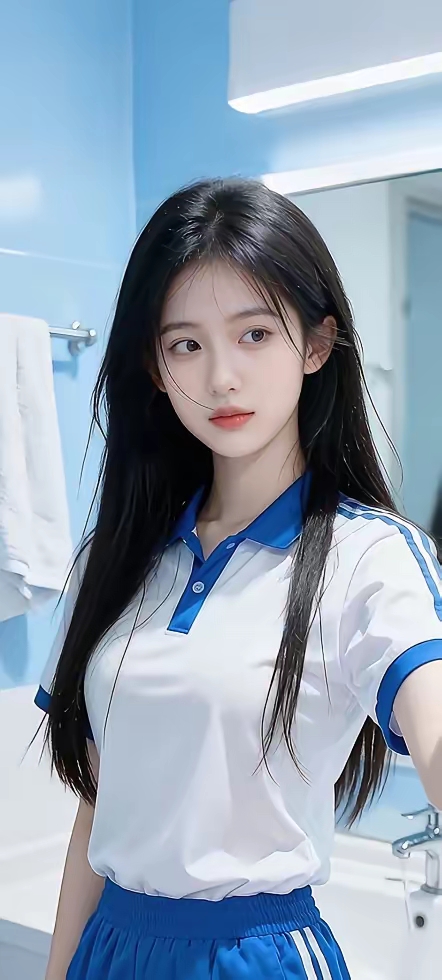 青春活力少女,运动风穿搭,镜子前自拍,元气满满!💪🏻💙