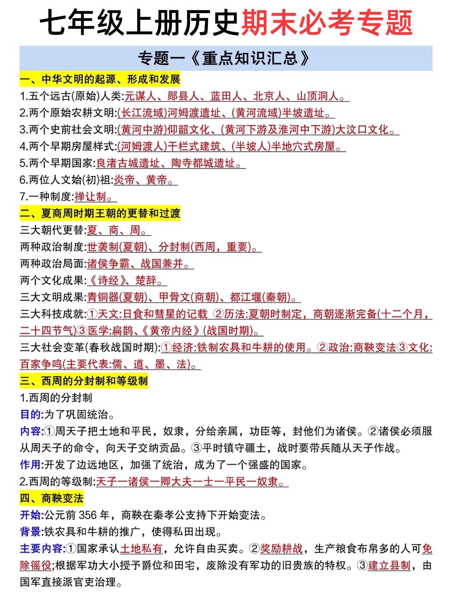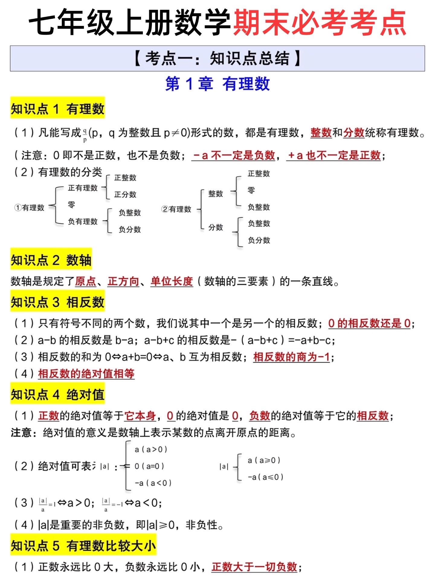 七年级上册期末总复习必背重点知识汇总。七年级上册各科必背重点,老师给大...