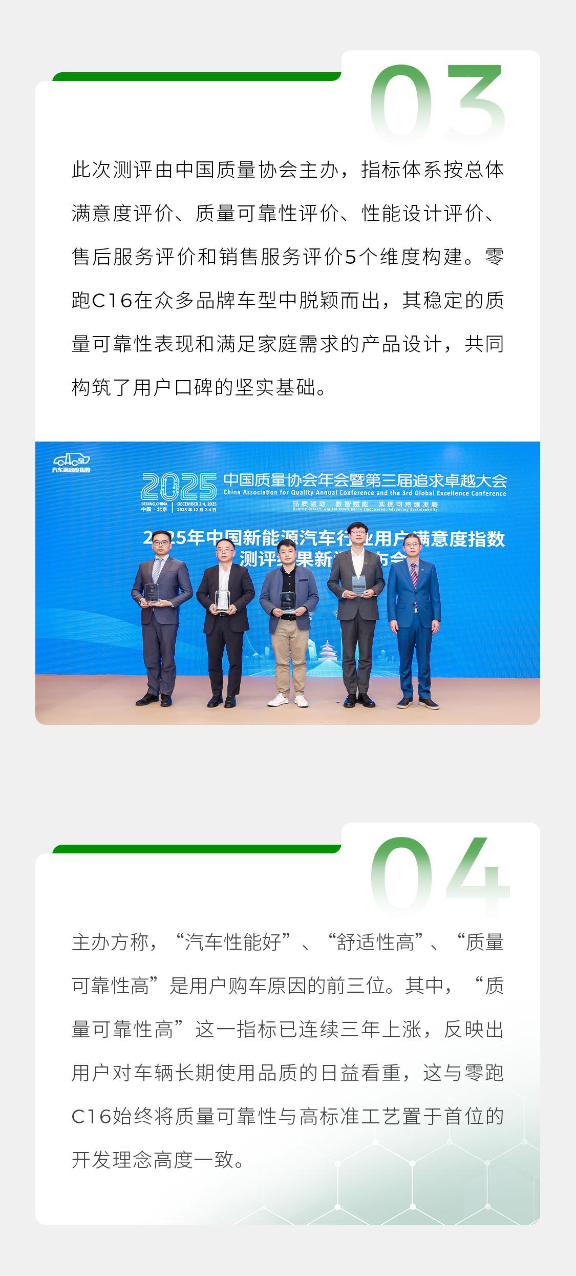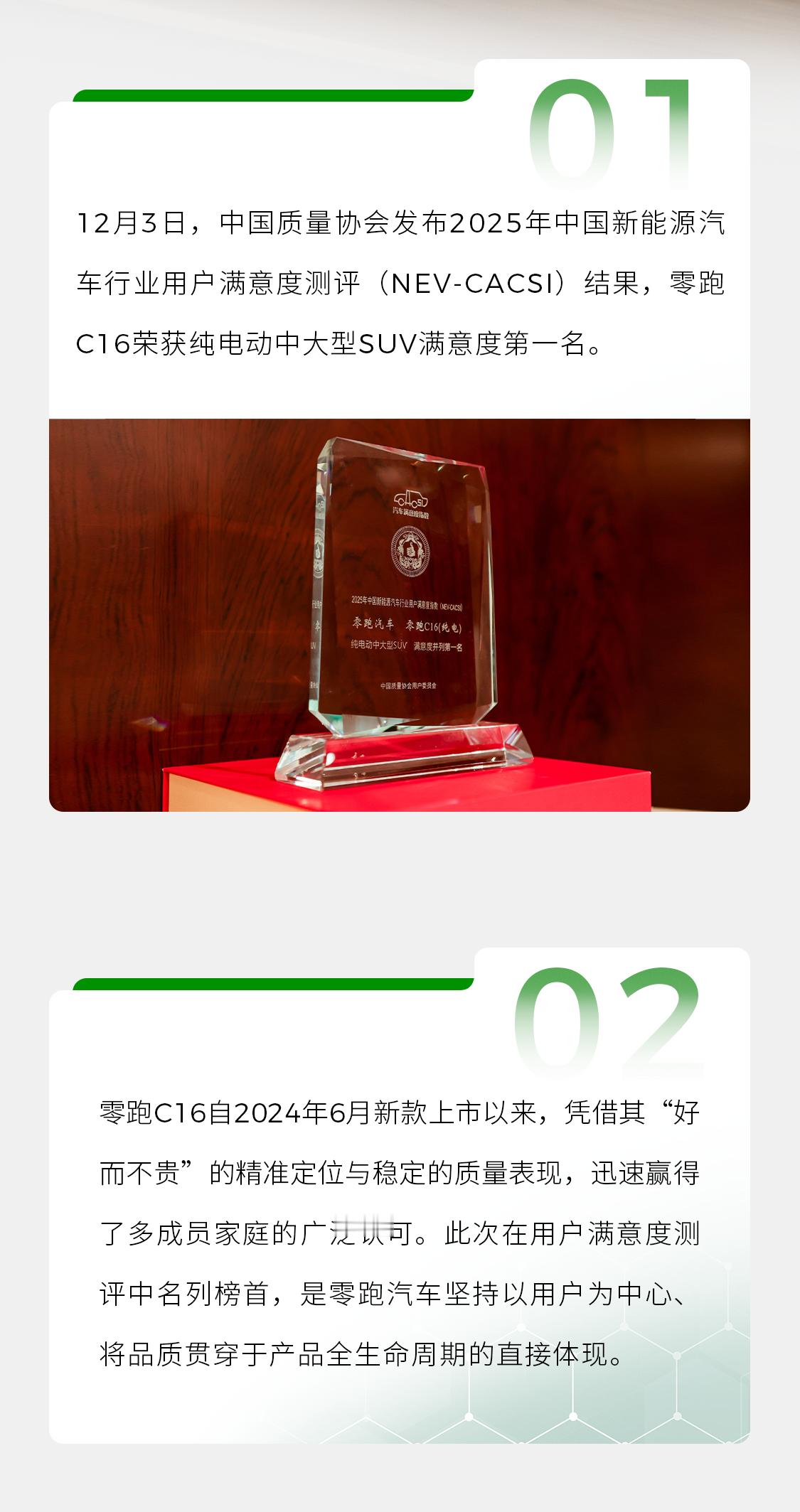 😎好产品自己会说话🏆零跑C16荣获中国质量协会2025年纯电动中大型SUV满意度第一!零跑坚持“好而不贵”,为更多家庭打造更精彩的出行体验这份荣誉,是我们和11万个家庭的双向奔赴!