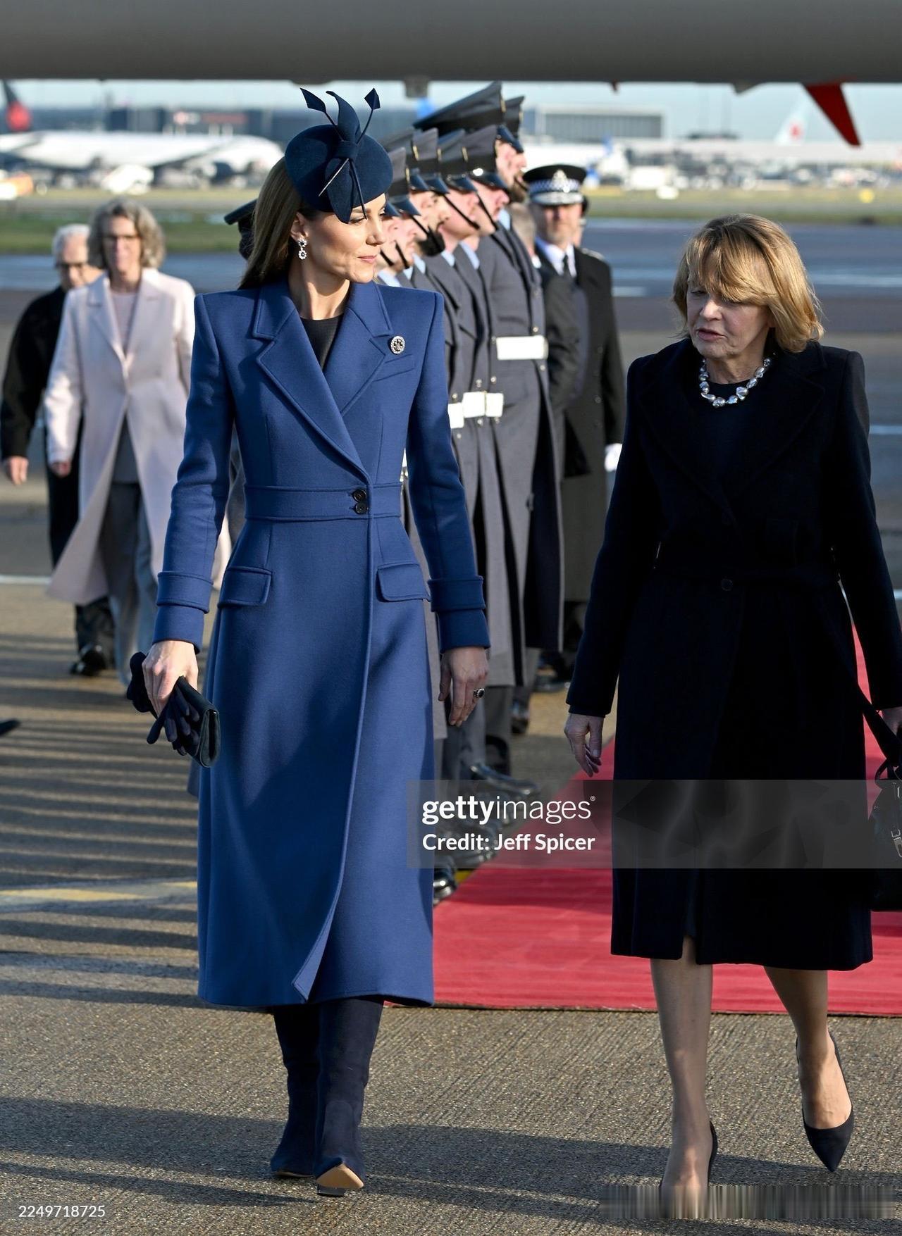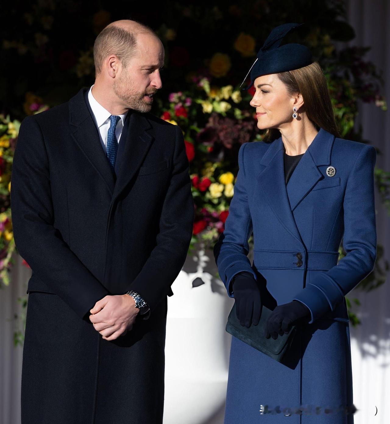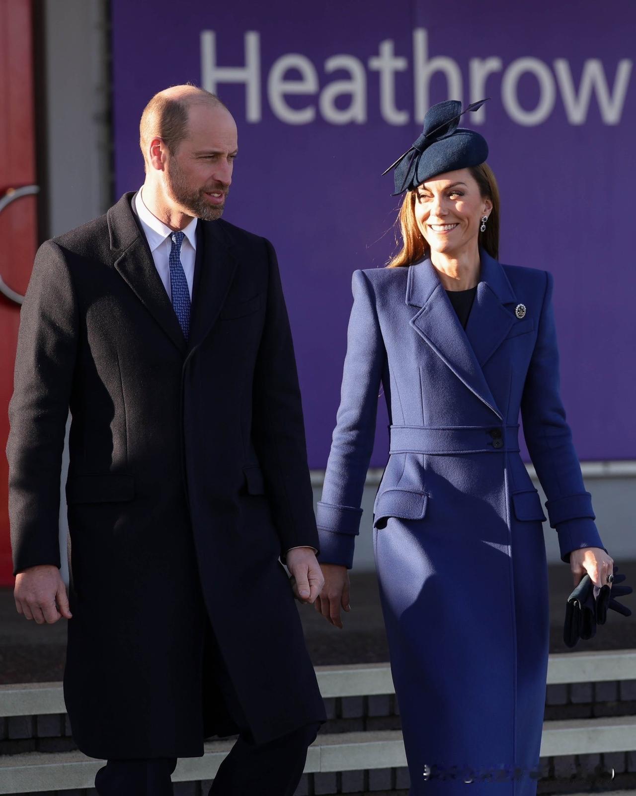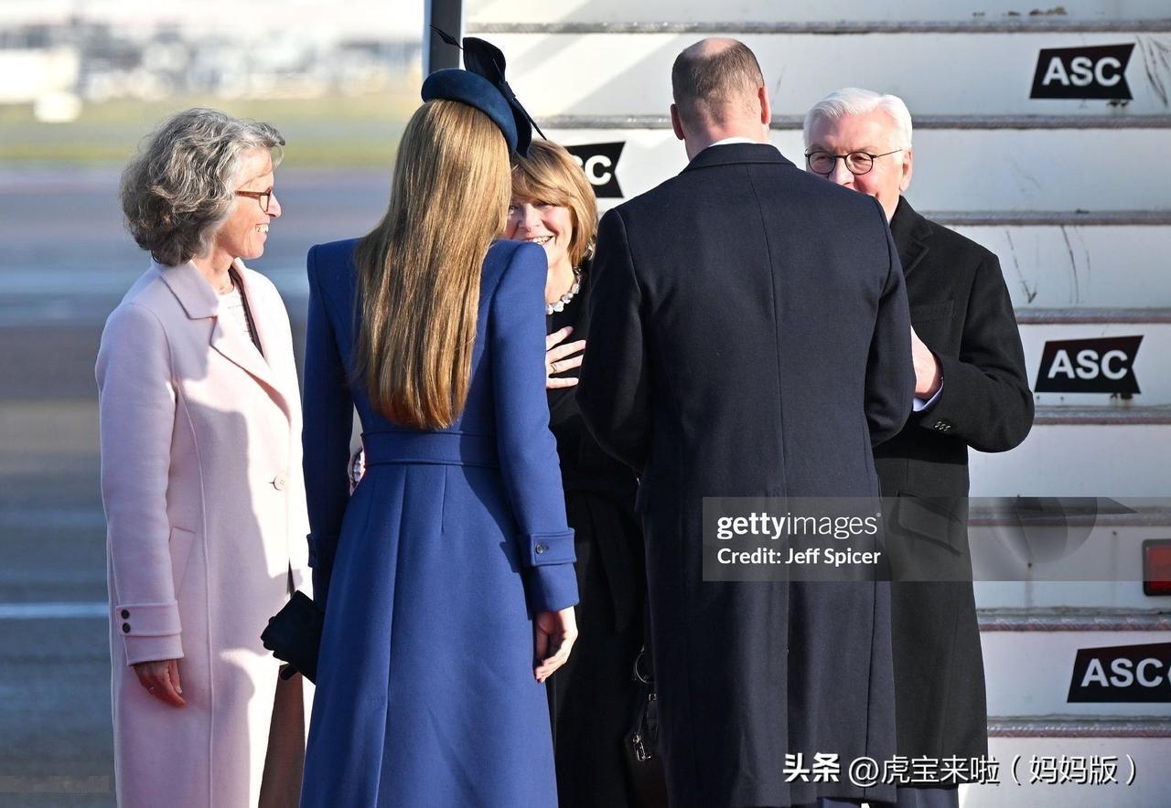 威廉凯特夫妇在伦敦希思罗机场,迎接到访的德国总统夫妇!夫妻俩的蓝色相辉映,好评!