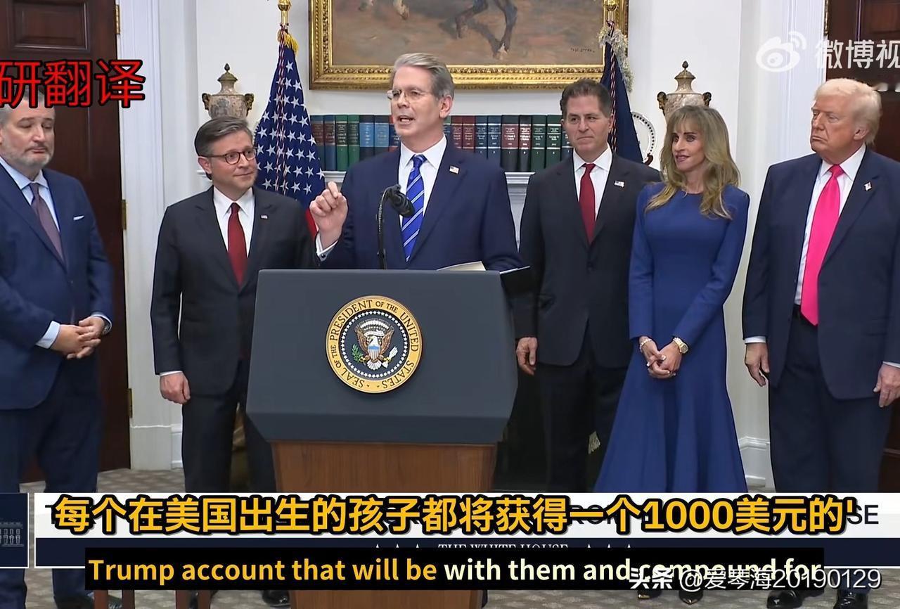 不得不说,特朗普真的很有一套,他的“特朗普账户”听起来真的很有诱惑力。每个符合条件的新生儿都可以开设一个“特朗普账户”,每个账户由政府先行注资1000美元,孩子的父母每年可以注资5000美元,父母的老板可以注资2500美元。只是这个“特朗普账户”里的钱不是存入银行,而是用来买股票(跟踪美国股市大盘的指数基金)。 这项政策的前景是非常美丽的,尤其是看到戴尔科技创始人迈克尔·戴尔夫妇当场宣布向2500万名儿童,每人捐赠250美元支持“特朗普账户”时。美国有那么多的富豪,如果每个富豪都能像迈克尔·戴尔夫妇这样慷慨的话,那每个美国孩子不是从小就拥有了一笔很大的投资?再加上以后18年的炒股增值,真会像特朗普所说的那样,每个美国孩子将来都是资本家,怪不得称为《大而美法案》呢?以后的美国孩子再也不用因为上大学而贷款啦,美国再也不会出现,上班二十多年还不清助学贷款的啦。 我想不明白的是: 前总统奥巴马可是四十多岁才还清助学贷款的,为啥他就想不出如此美丽的法案呢?而作为“富二代”的特朗普,不受助学贷款的困扰,却能想到如此完美的办法呢?期待友友们的神回复。 (图片来自网络视频截图)
