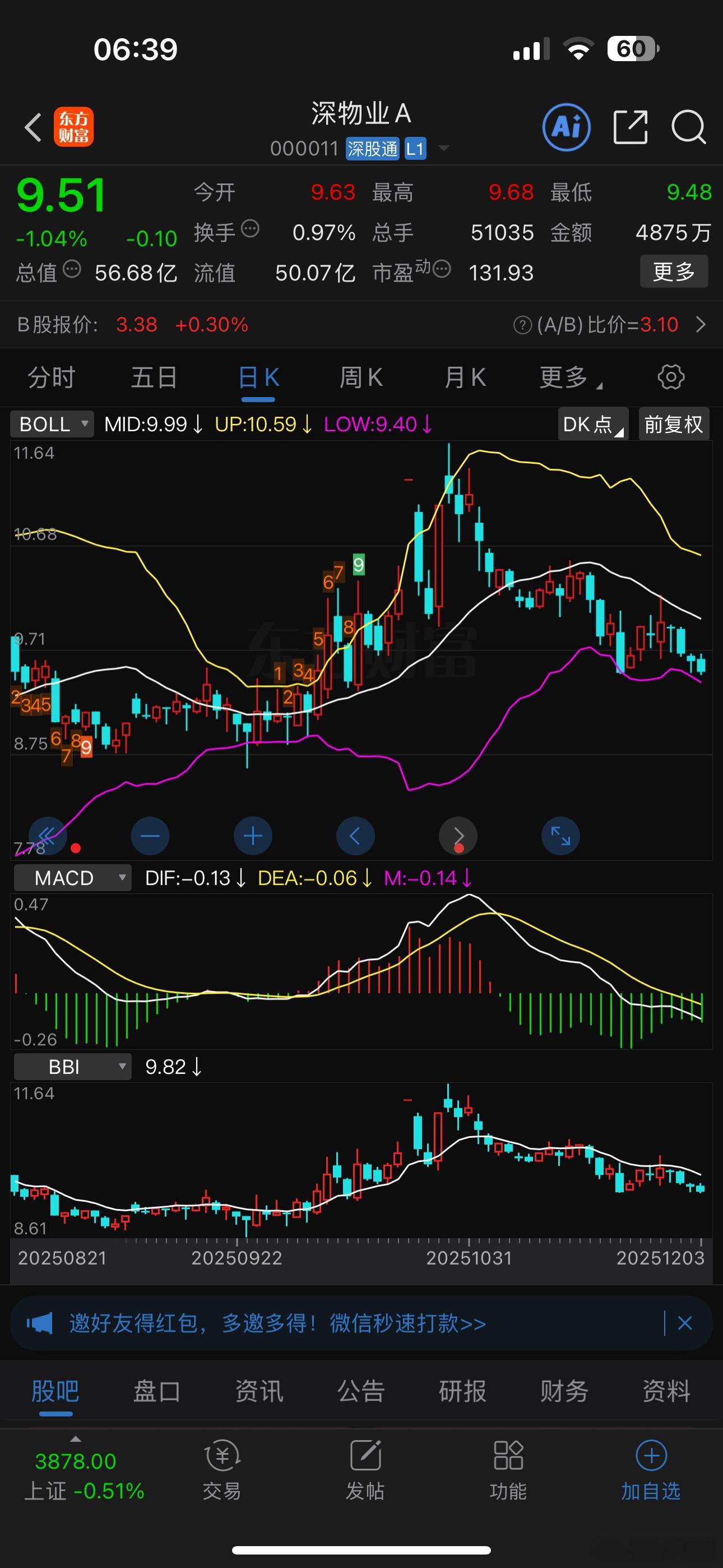 近期受万科债务影响,整个深国资地产股票都持续下跌。都处在持续破位回落状态,不要碰