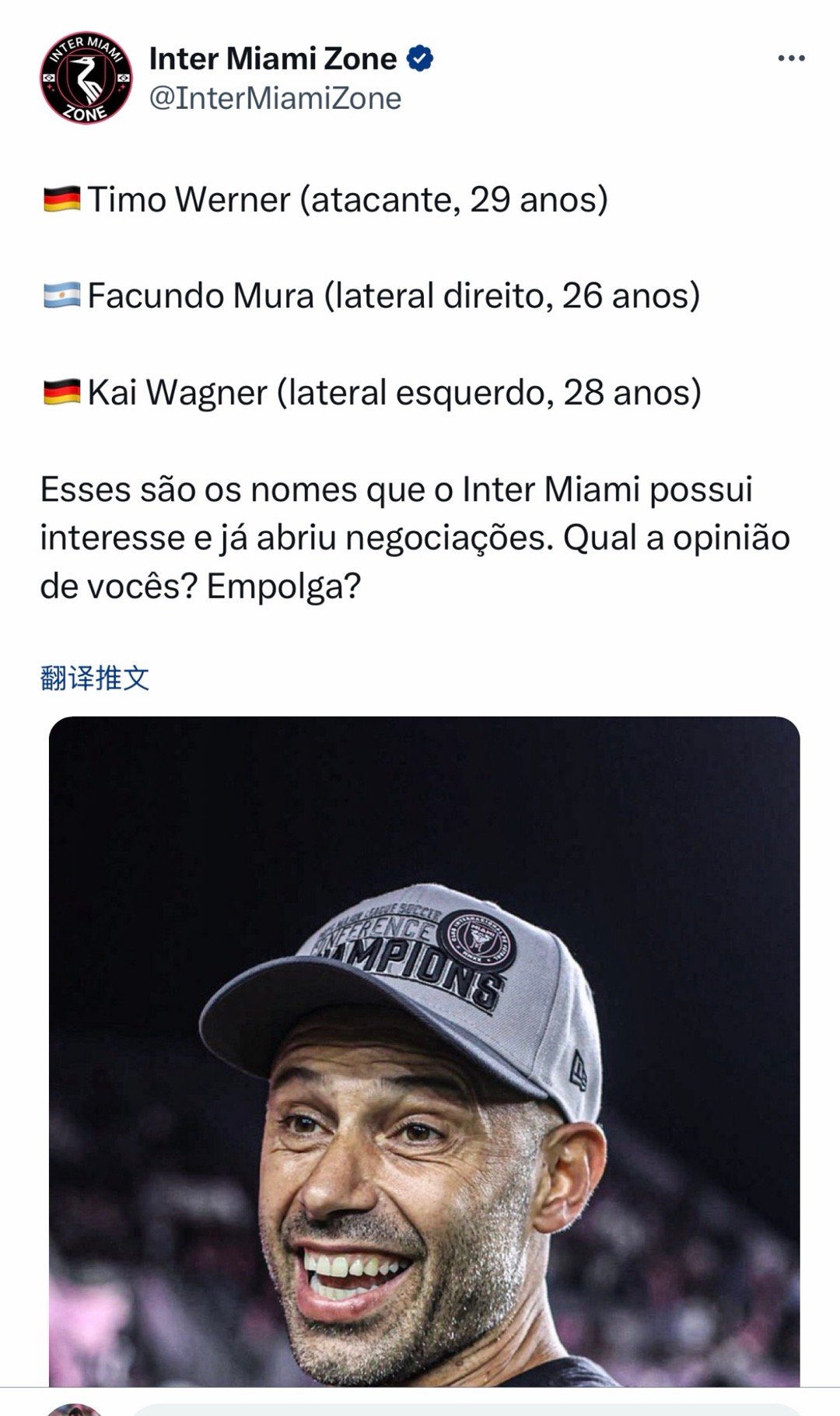 20251204 迈阿密国际近期专辑市场信息追踪|1️⃣阿连德,目前租借期将满,迈阿密方面有意向续租,但球员归属权在塞尔塔,河床方面对他非常感兴趣,河床主帅马塞洛·加拉尔多非常想要这名球员,并且已经为这笔引援开了绿灯。来源:@ GerGarciaGrova Tyc记者2️⃣维尔纳,传闻进一步发酵。据悉,蒂莫·维尔纳及其经纪人正在与迈阿密国际就一月份的转会进行谈判。如果没有意外变数,转战美国职业足球大联盟的计划正在按部就班地进行中,球员合同于2026年6月到期。来源:德国天空体育3️⃣ 法昆多·穆拉(右后卫,26岁)、凯·瓦格纳(左后卫,28岁)都是迈阿密国际感兴趣并正在谈判的范围内。4️⃣ 迈阿密国际已经排除了签下内马尔的任何可能性,这一决定已经做出,“MSN 三人组”重聚将不会发生。来源:每日体育报皇家盐湖城vs迈阿密国际圣地亚哥vs迈阿密国际