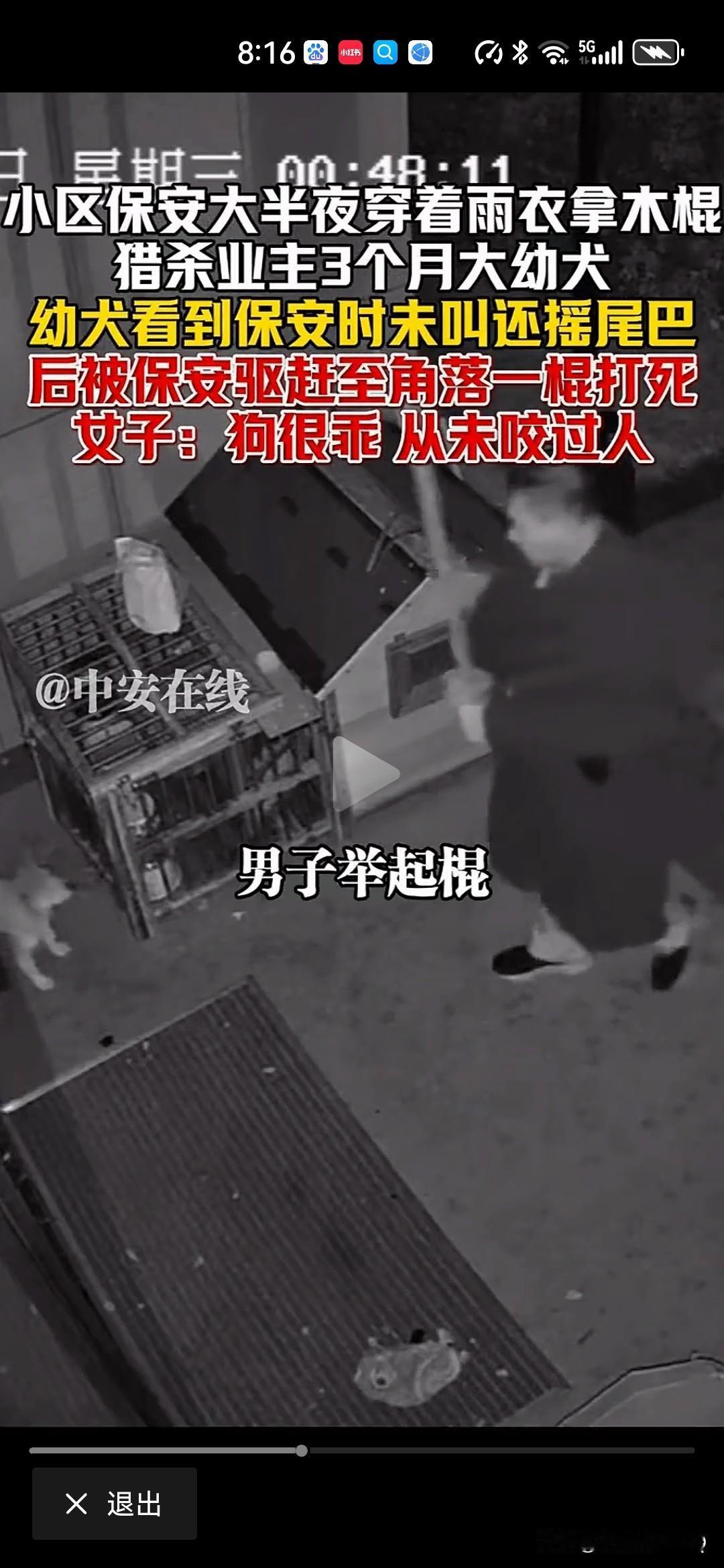 被狗追击把狗打死,要承担责任吗小区保安一棍打死业主3个月大幼犬!这说明保安还是能打的,以前欺负业主不停劝打二巴掌,现在成立业委会,规范值勤不打业主就盘问陌生人进入,同时阻拦无序的外卖小哥,快递以及流浪狗,猫预防咬伤业主,这个还得支持物业保安,虽然不知道业主犬夜叉,但先打死再讲价也好,否则狗咬人物业还得赔更多!要怪就怪业主放狗流浪吧!