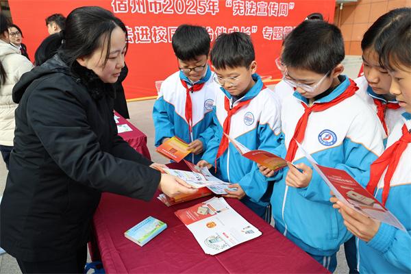 在第十二个国家宪法日来临之际,为弘扬宪法精神,增强青少年法治意识,12月2日,宿州中院组织干警走进宿州市第一小学银河校区,开展宪法知识宣讲活动。