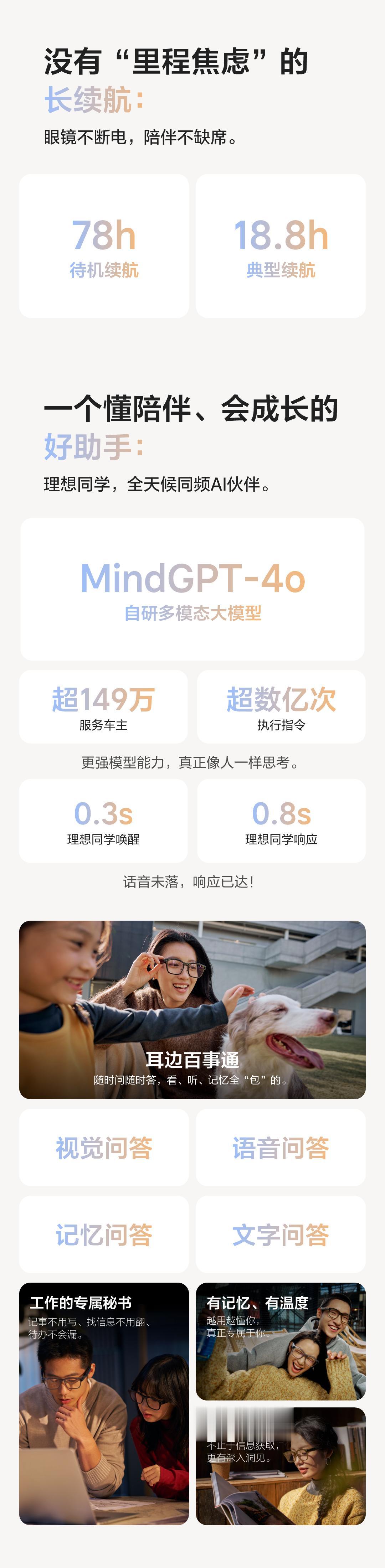 理想AI眼镜Livis搭载全新升级的理想同学,以自研MindGPT-4o多模态大模型为核心,真正成为AI助手。理想同学已服务近150万车主,执行过数亿次指令和深度对话,经过真实场景验证,成长为可靠的智能伙伴。