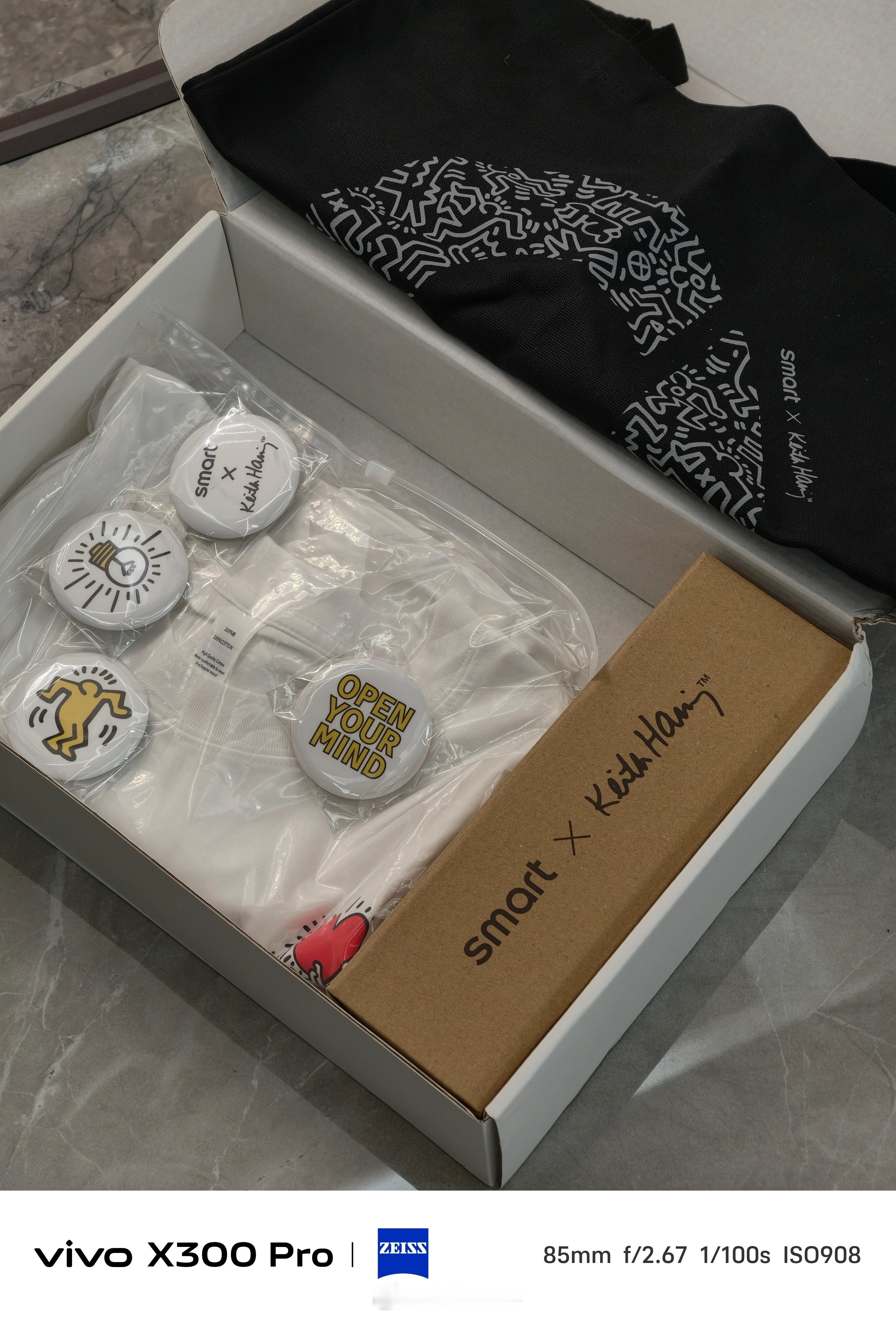 收到了smart × Keith Haring的联名礼盒Keith Haring是特灵动很天马行空的风格和smart的古灵精怪、个性化也很适配礼盒里面有 联名的T恤、帆布袋、水壶、徽章听说12月5号 他们会在杭州打造整个艺术街区友友们可以去打卡咱们评论区两天后抽礼盒哈抽奖详情