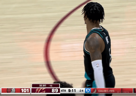 第四节比赛中,凯莱布-乐福弧顶三分还能投进砍下17分,开拓者末节仍领先骑士15分。