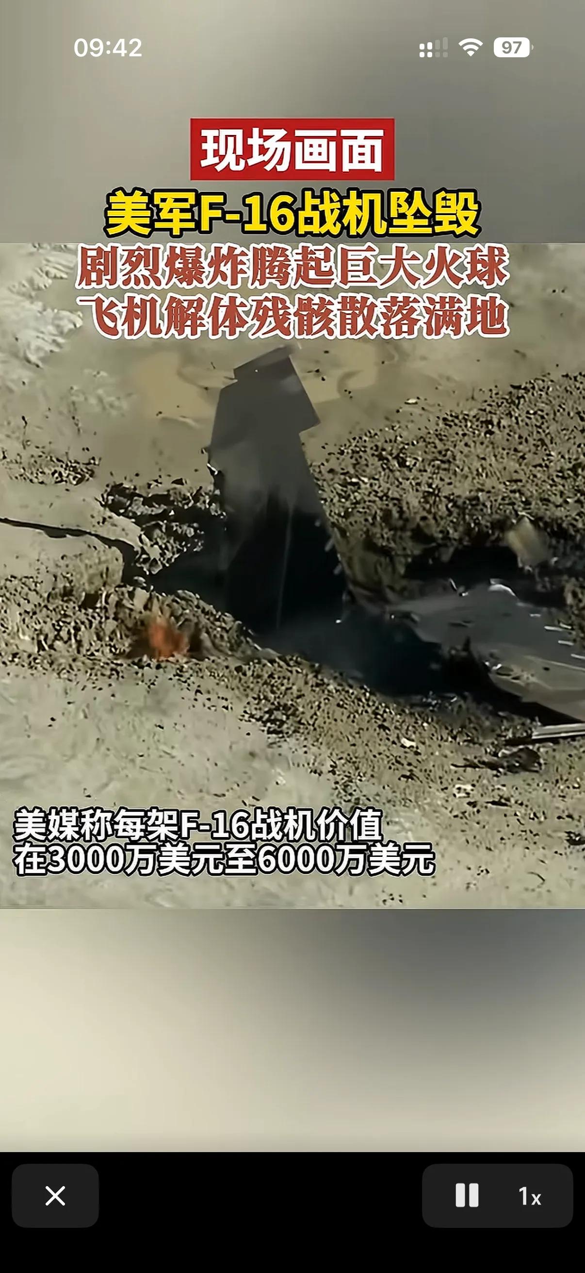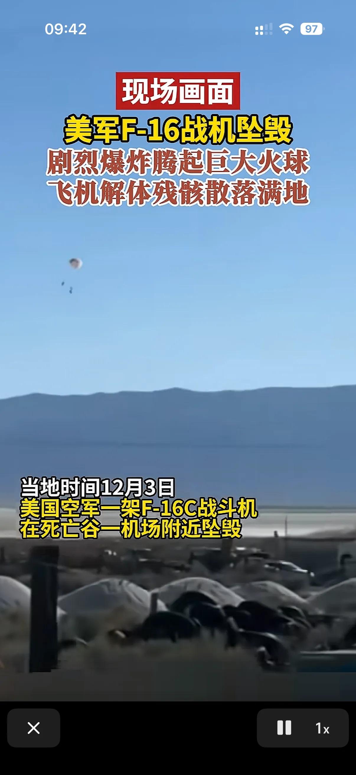 美国又一架战机不知道什么原因坠毁了! 就在12.3日,美国的一架战机f-16c战斗机就在死亡谷一机场附近突然坠毁! 万幸的是飞行员通过弹射系统成功逃生,这已经不是今年第一架坠毁的战机了,就在不久之前美国在海上就连着坠毁两架战机! 接连发生战机坠毁事件,让美军的飞行员对自身安全越发担忧起来,要知道上次飞机坠毁以后还没有查清什么原因,现在又有一架f-16c战机坠毁! 有记者拍到在坠毁现场遍布战机残骸! 看来美军要彻查自家所有的飞行单位了!