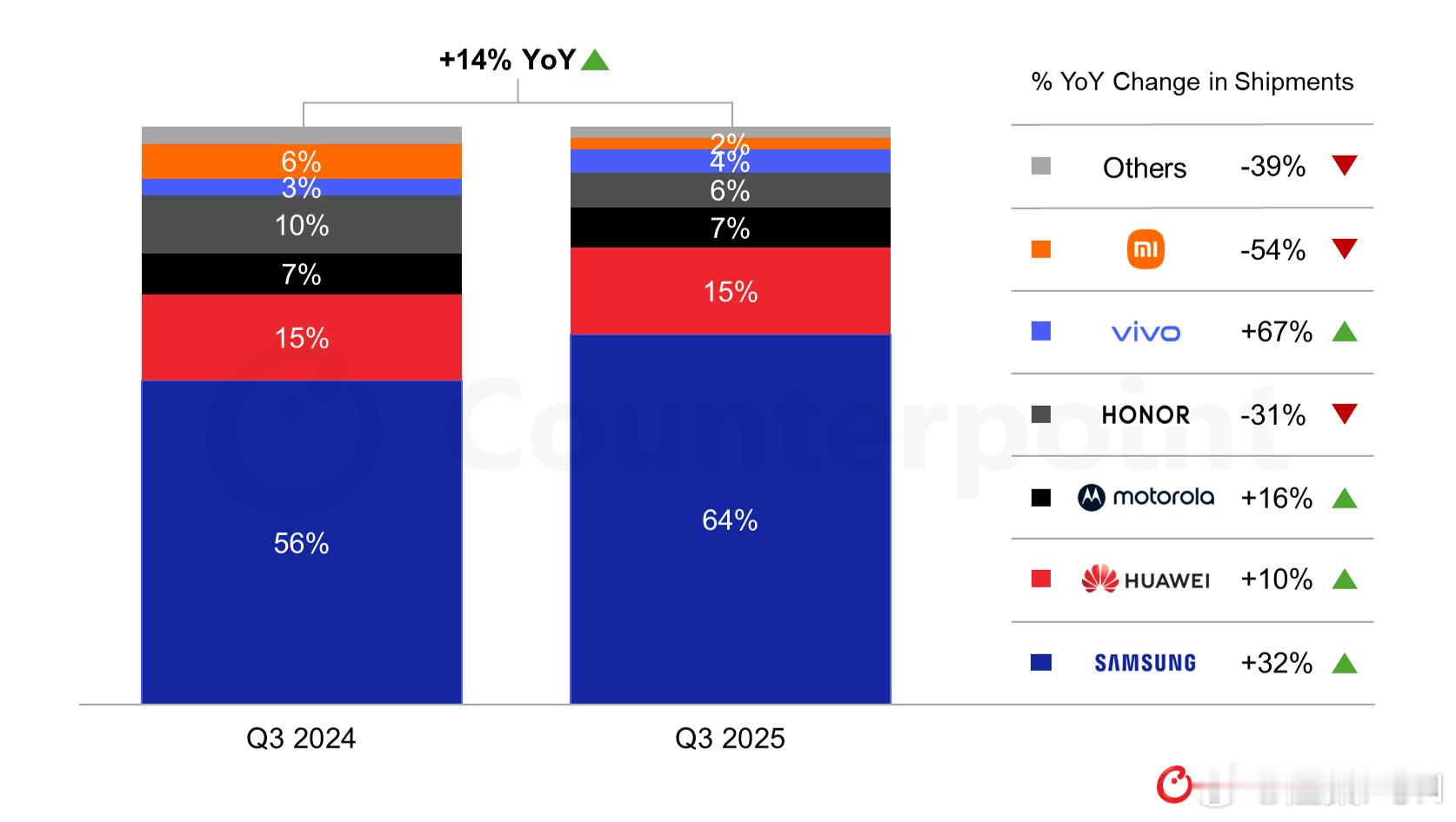 华为被美国制裁这么多年,折叠屏出货量在全球依然保持15%,还有10%的增长,这样的成绩是在很不错。三星刚刚发布的三折叠4块屏幕,真没法和华为三折叠相比。要是公平竞争,一定是攻守易形!