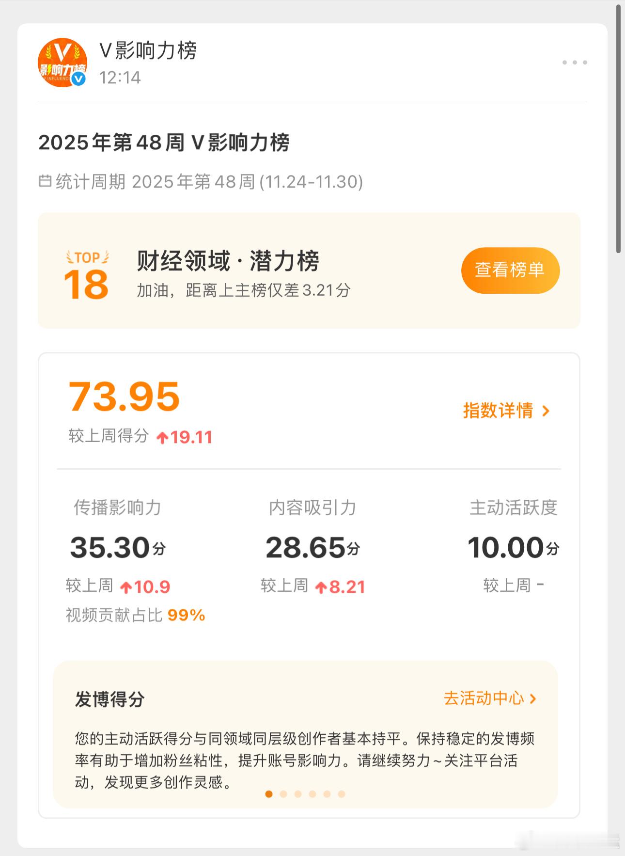 昨天的数据很满意,希望自己再接再厉。玩微博快两年了,有收获有意外惊喜。没想到攀登到了财经榜18名👍