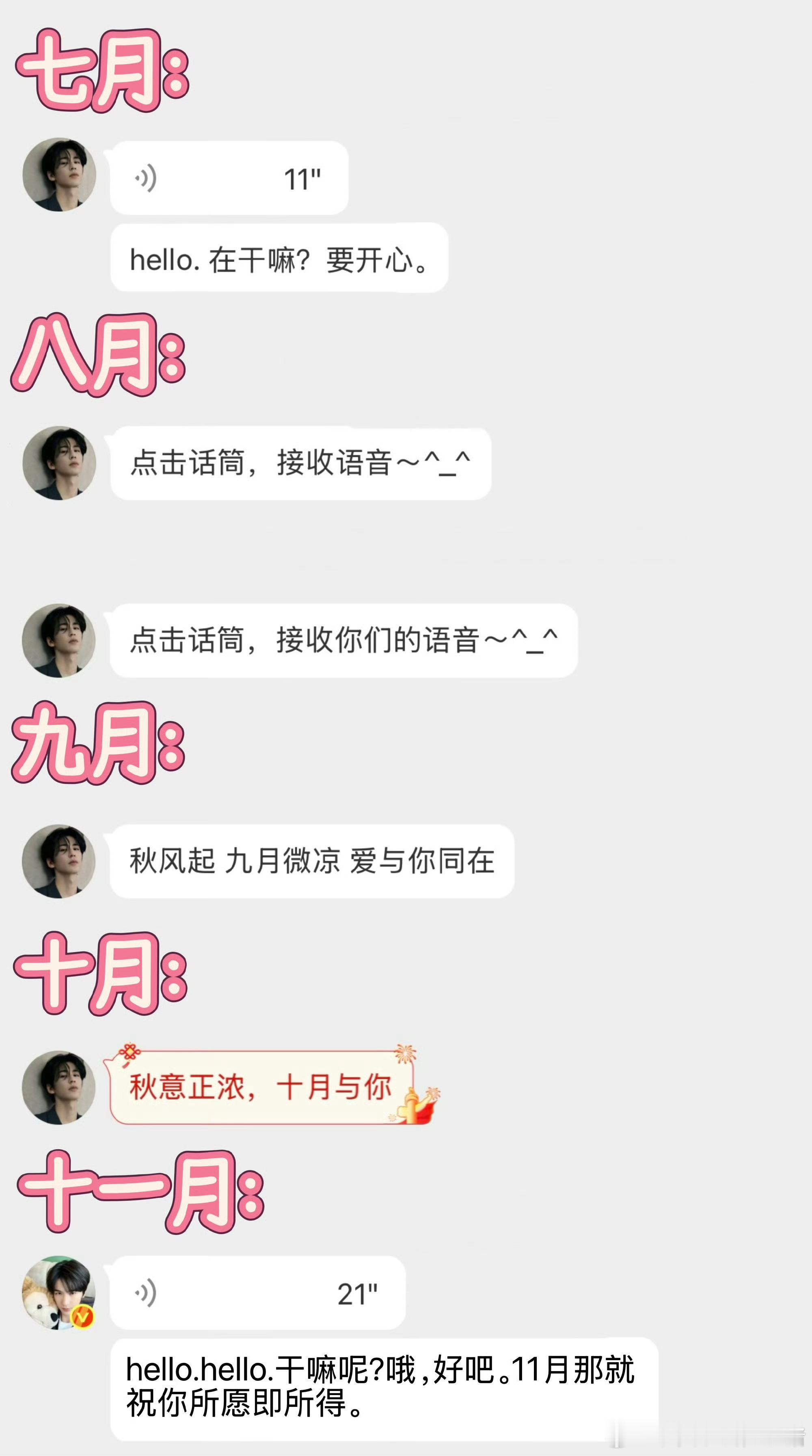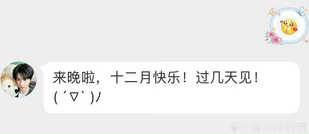 张凌赫十二月自动回复:“来晚啦,十二月快乐!过几天见!”真的把粉丝捧在心上,还有各种颜文字和录制语音,好用心啊