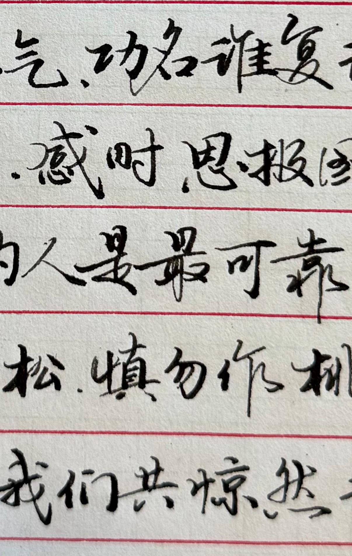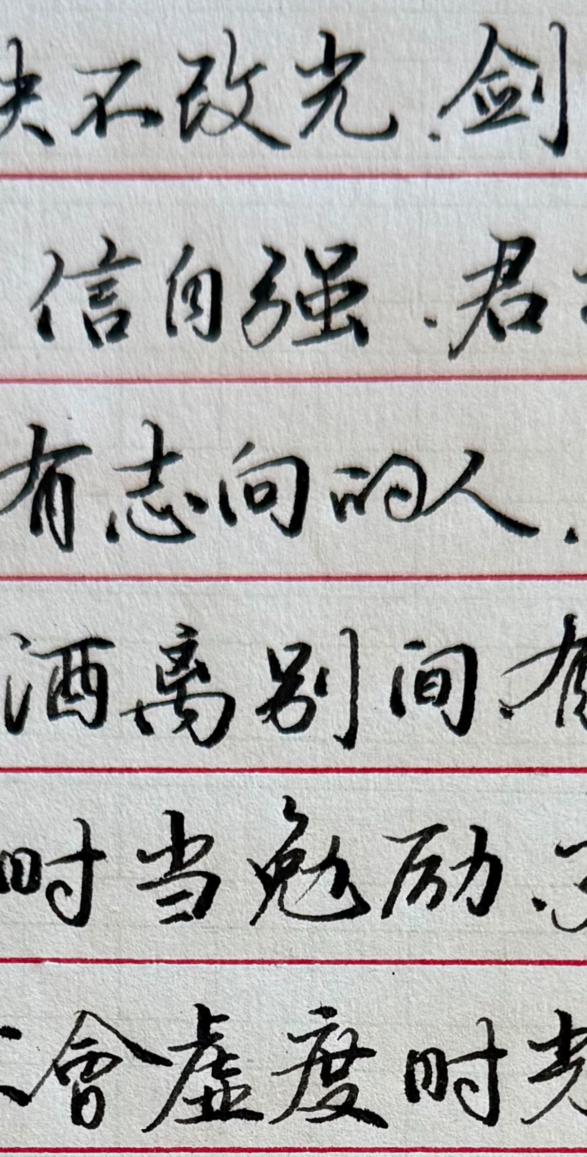 为什么能坚持两年多抄写练字? 坚持练,坚持晒? 我坚持了两年多了,和我一起练字的好多都退出了。 一个略带有点哲理的判断:坚持,这个坚持含有并不是很热爱的意味,如果真热爱的人是不用坚持更不会天天晒,默默地在家学习了。 妪不知道是不是热爱,两年多从看到分角的收益而窃喜到已完全不去关心,从看到近千万流量的爆款到仅有几千的流量而无所谓,只有抄抄练练…… 无论是不是热爱,是不是书法,妪每天必须写,认真写好每一篇,已经习惯了小桌子、纸、笔它们的味道,看着这一切心里舒畅就想写…… 是坚持还是已经融入了我的生活? 今天加晒细节